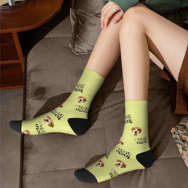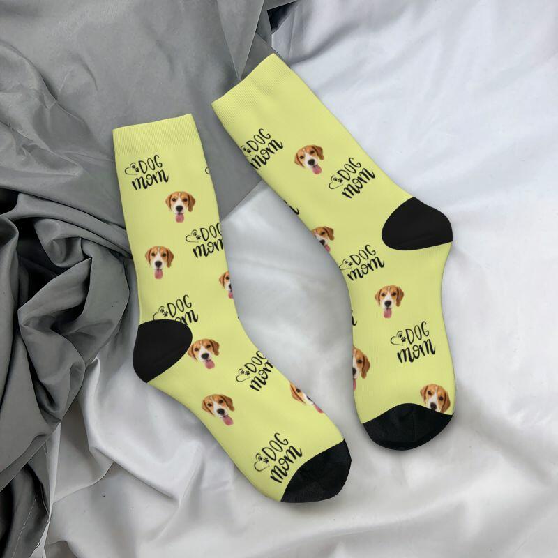 Dog Mom Gepersonaliseerde sokken met gezicht cadeau voor dierenliefhebbers