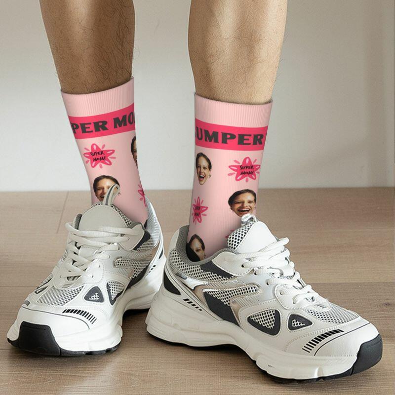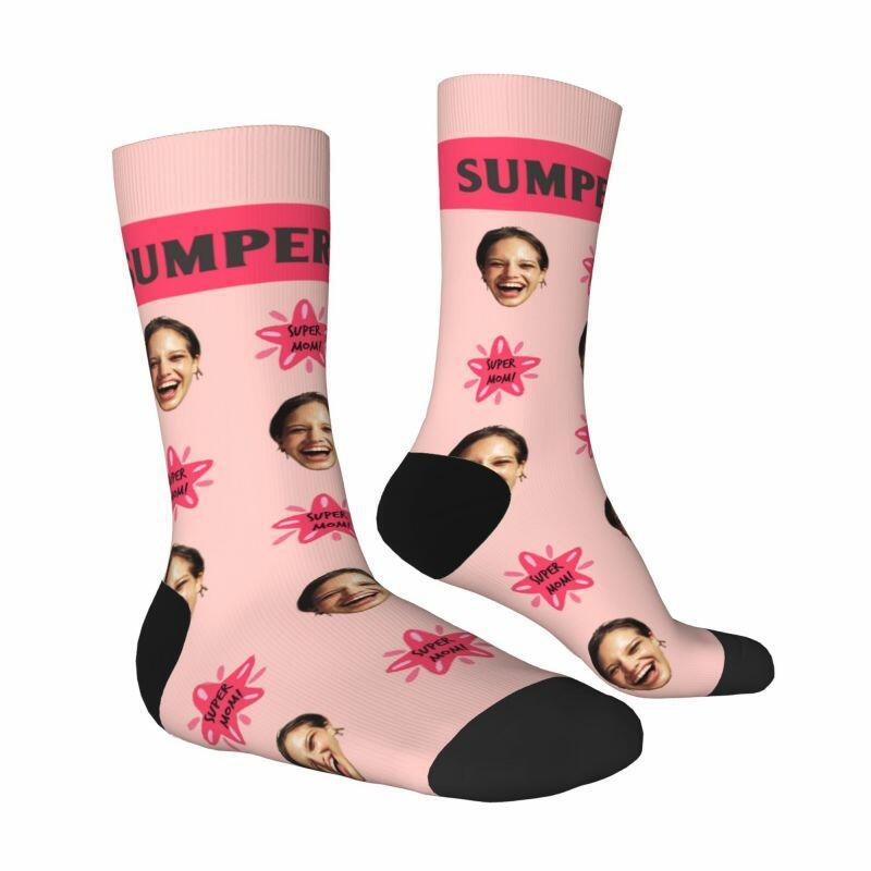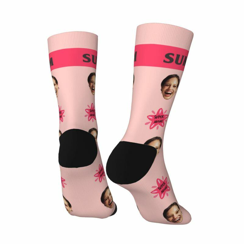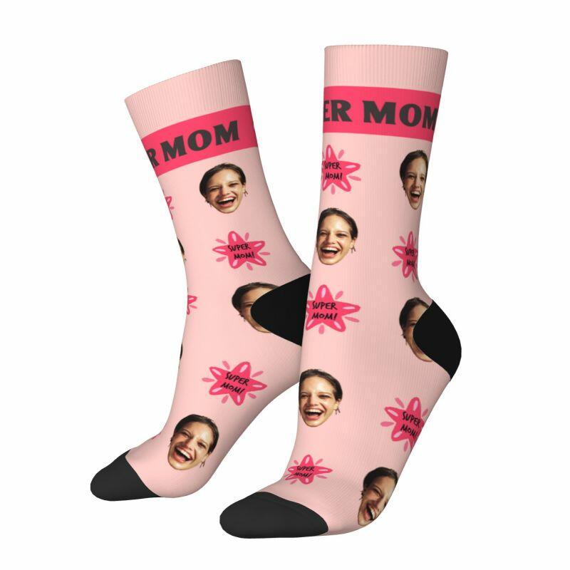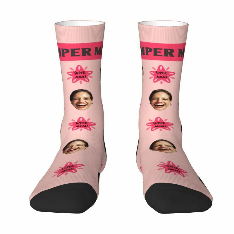 Super Mom sokken met gepersonaliseerd gezicht en foto's voor Moederdag