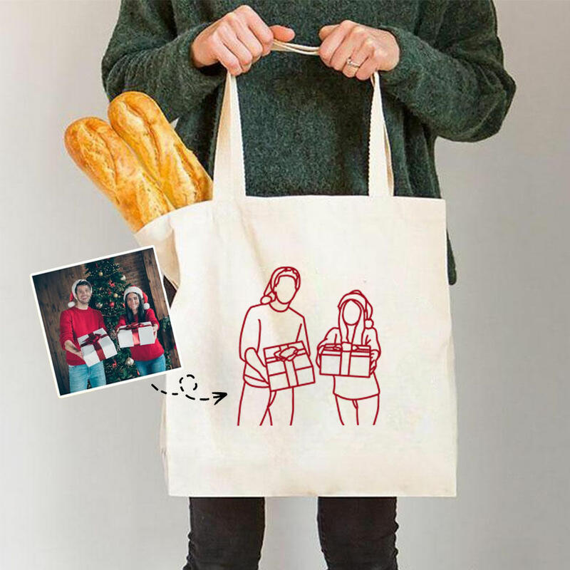 Aangepaste geborduurde canvas tas Voeg foto toe Schets Tote Bag