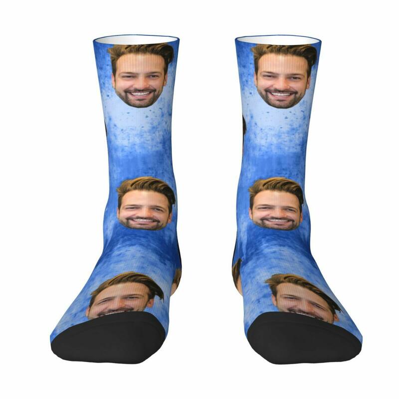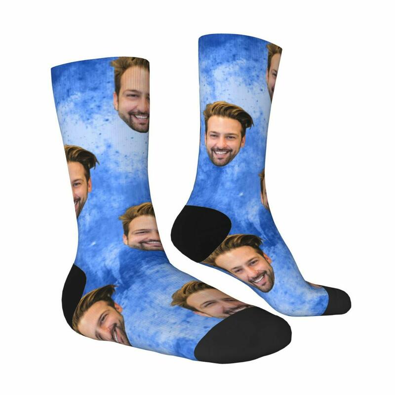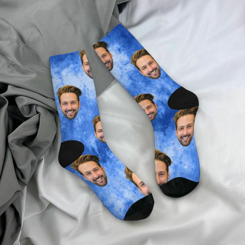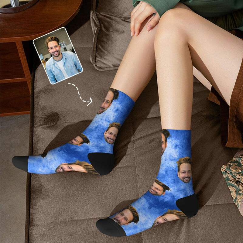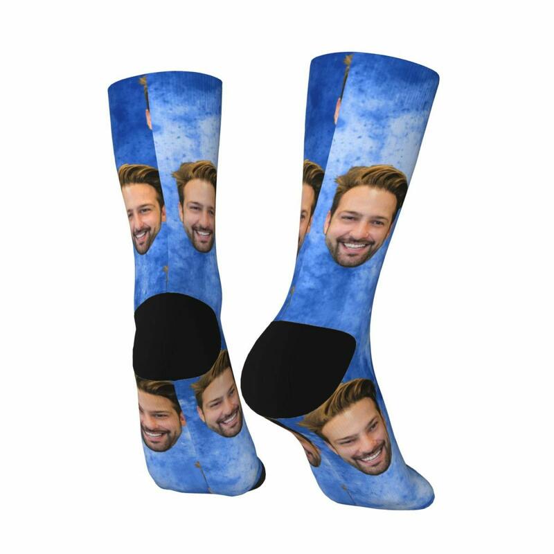 Custom Face Socks Blauwe Denim Tie Dye Mid-Tube Sokken voor Haar/Hem