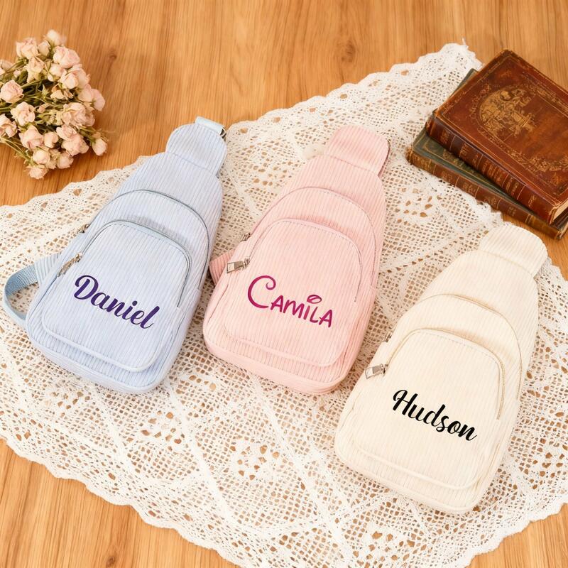 aangepaste naam Ribfluwelen Borsttas Mini Outdoor schoudertas Tas Zoet Cadeau voor Kinderen