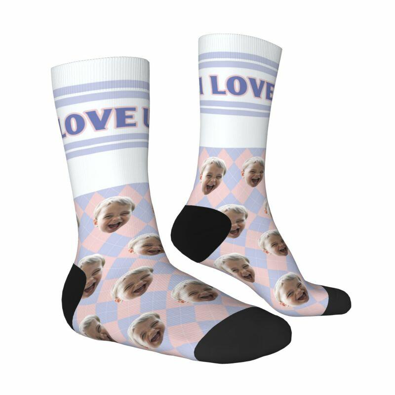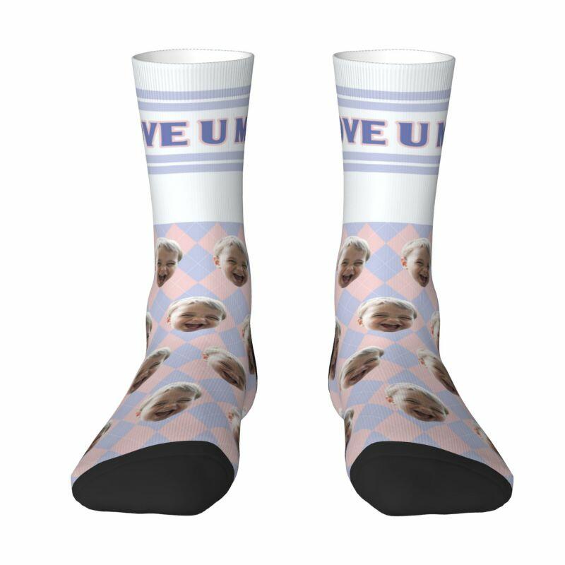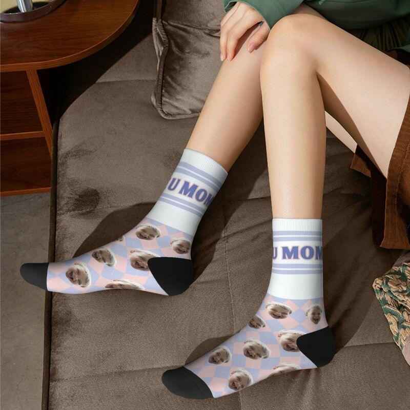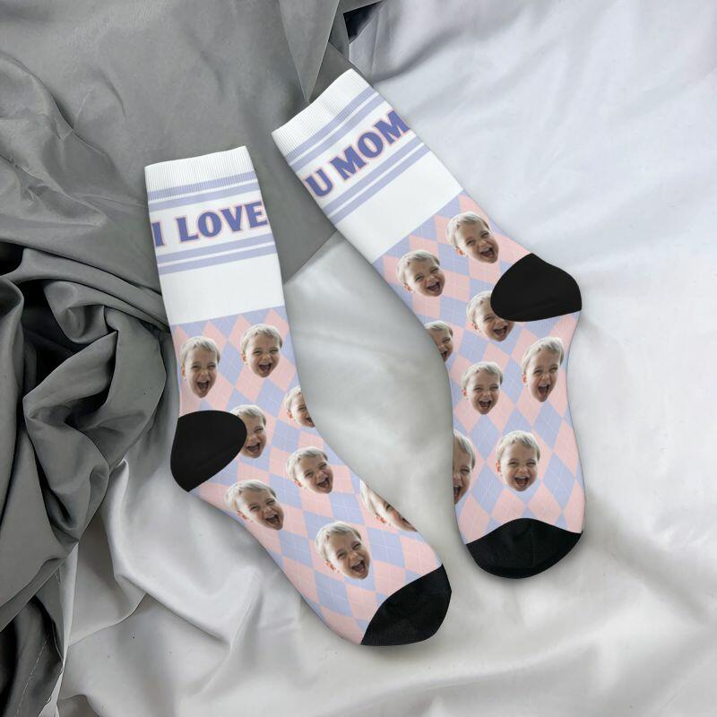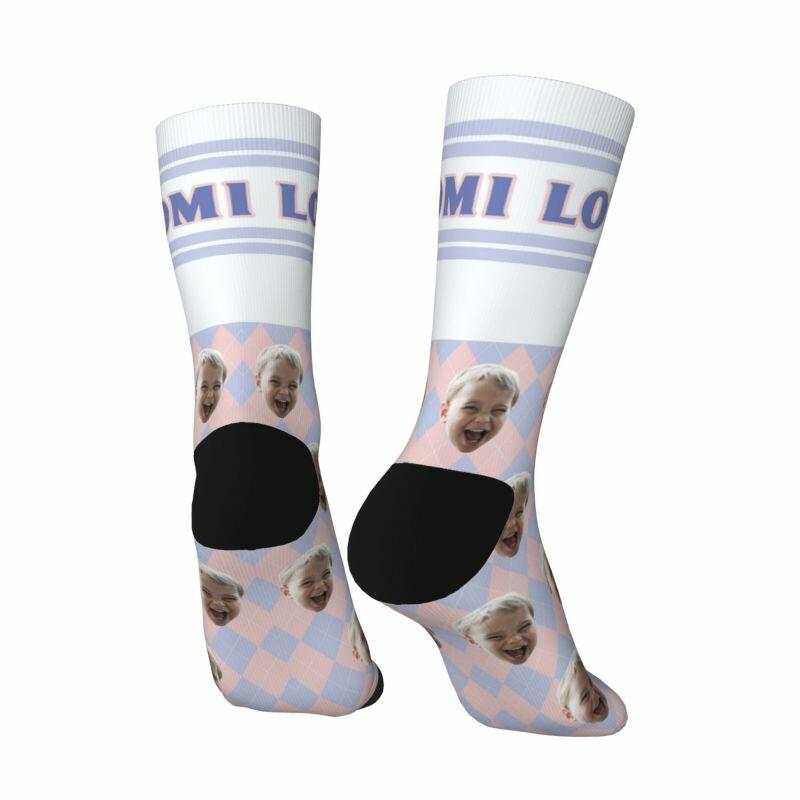 Gepersonaliseerde gezichtssokken met 3D print en kinderfoto's als cadeau voor mama