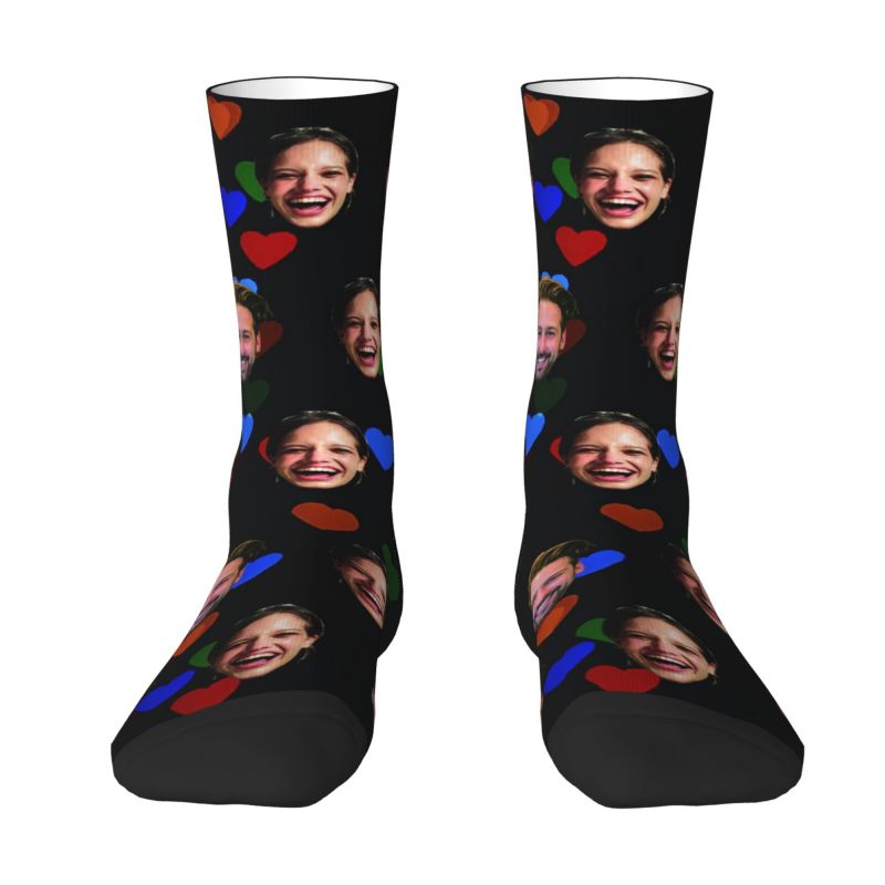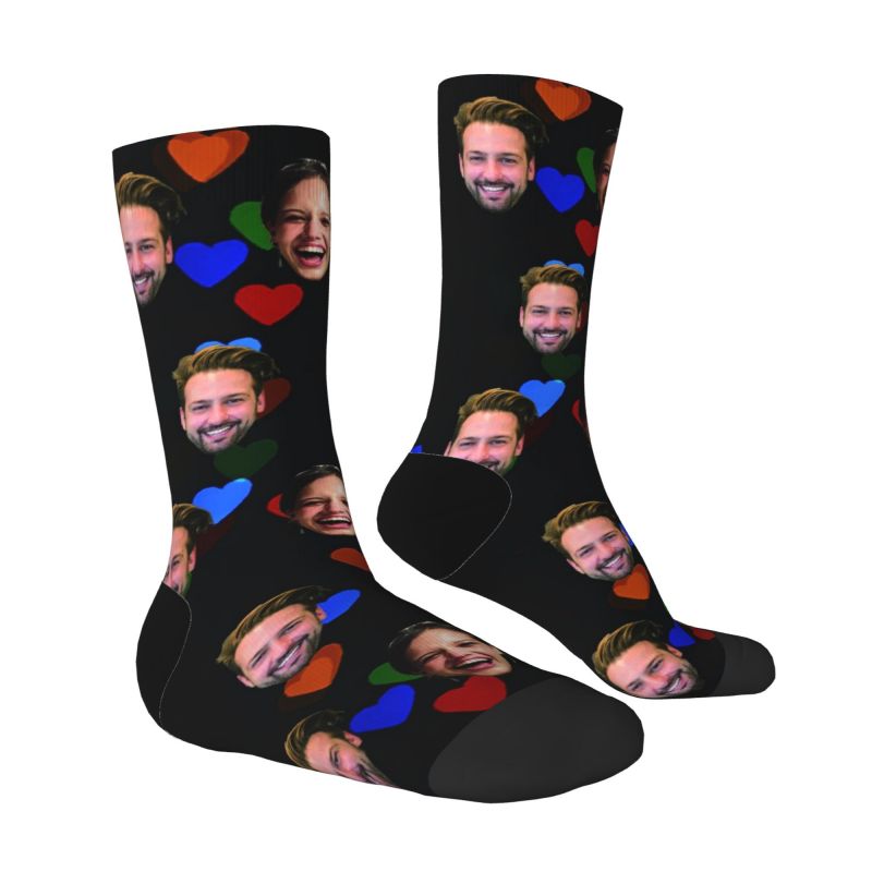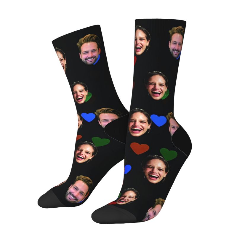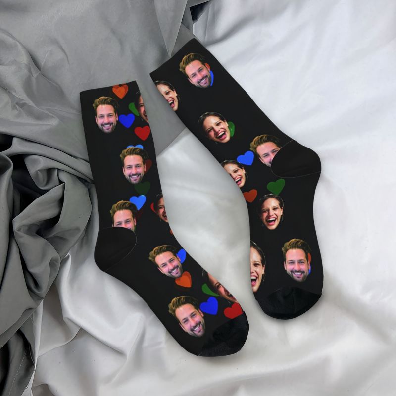 Gepersonaliseerde gezichtssokken Kleurrijk Valentijnscadeau met liefdeshartjes