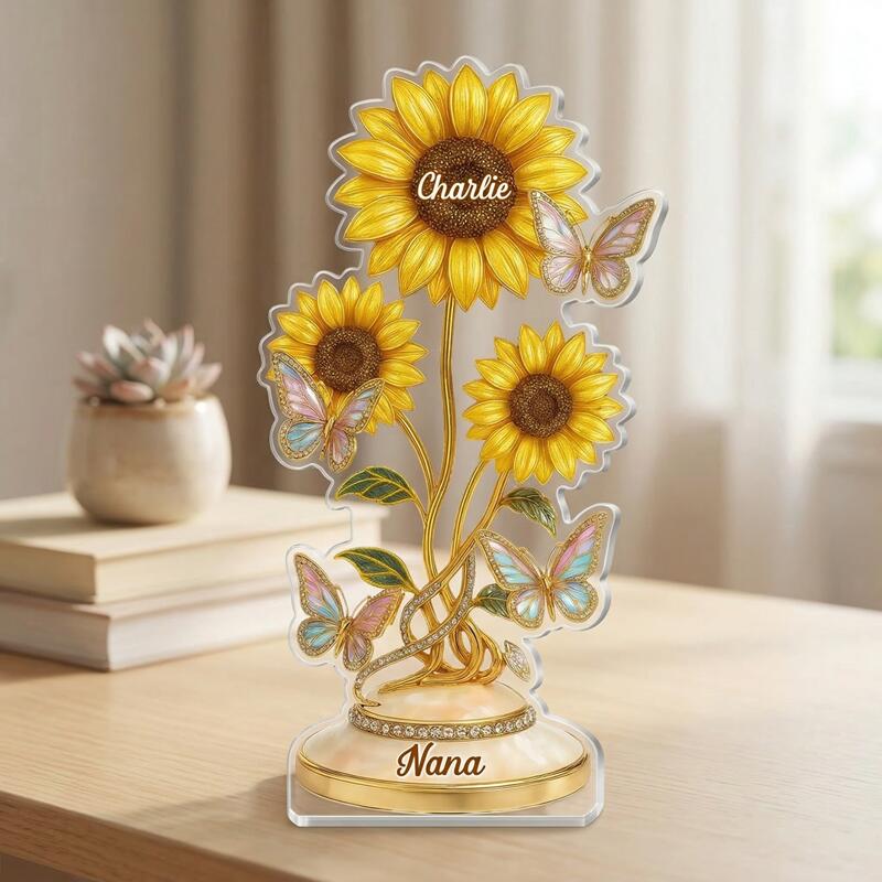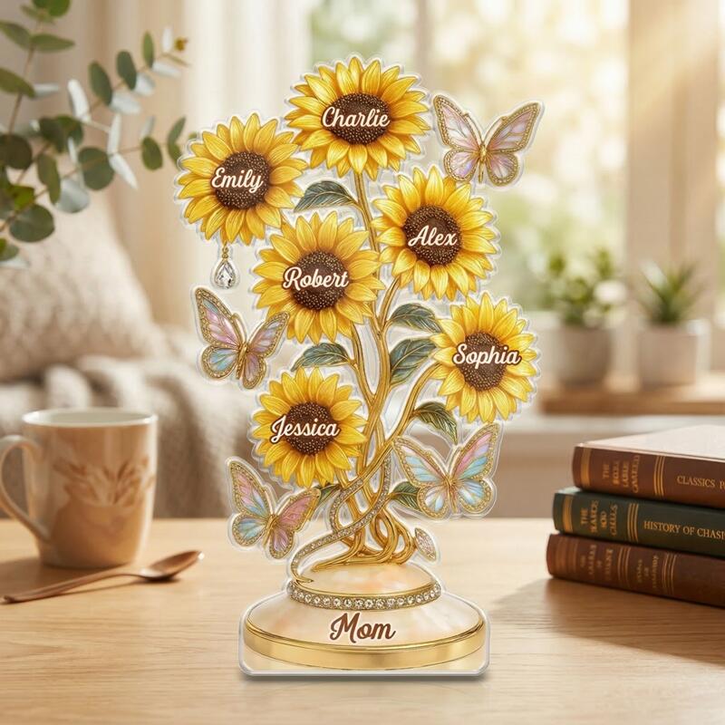 Gepersonaliseerde acrylblokplaquette aangepaste Kindernaam Zonnebloemenontwerp Prachtig cadeau voor Moederdag