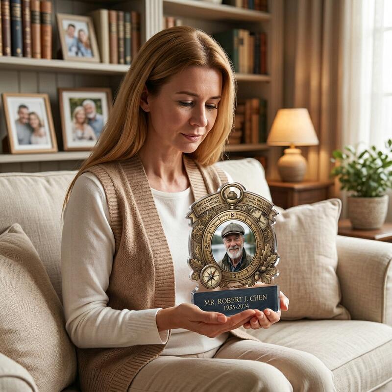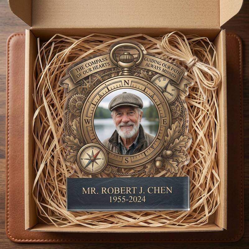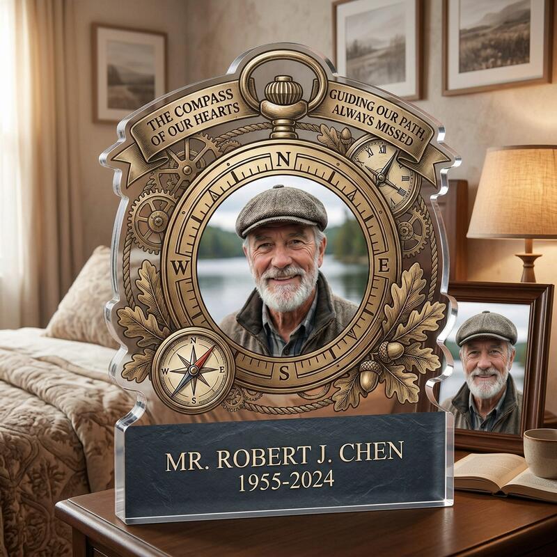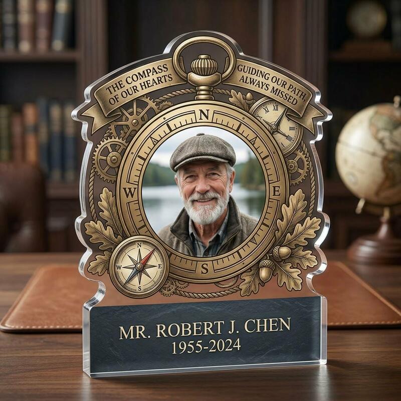 Gepersonaliseerde acrylplaquette met vaders begeleiding op maat gemaakte foto-herdenkingsgift voor dierbaren