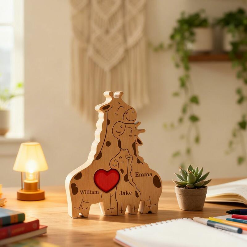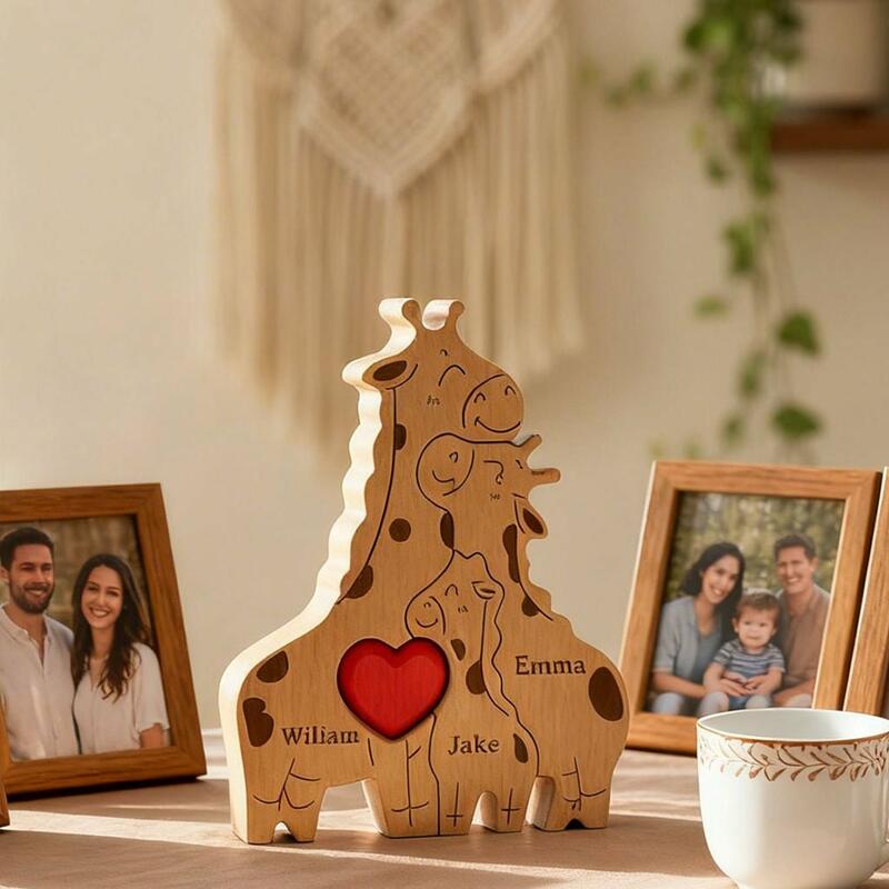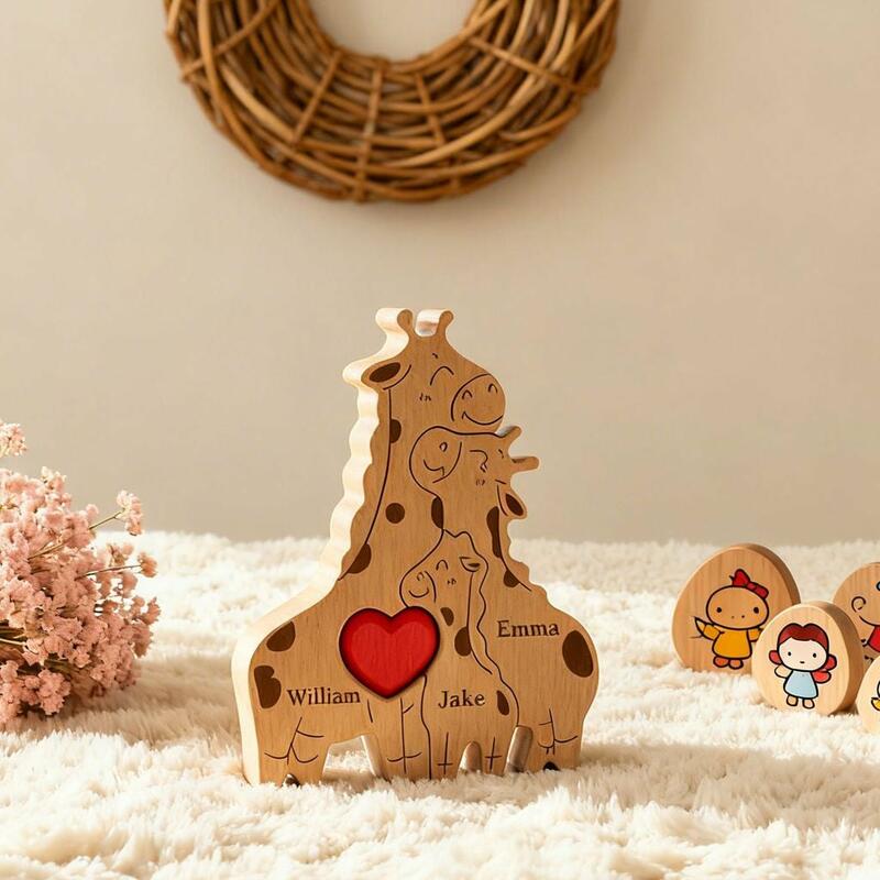 Gepersonaliseerde en schattige houten puzzel met een giraffenfamilie hartverwarmend cadeau voor mama