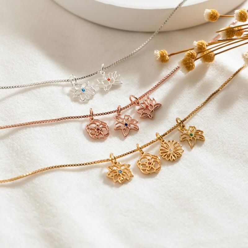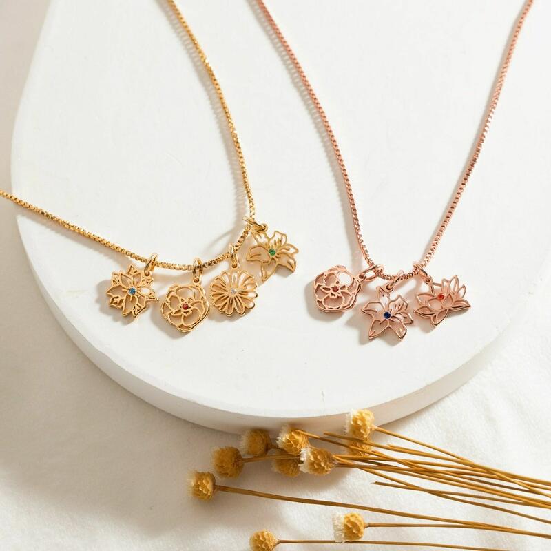 Gepersonaliseerd geboortedag-bloemen-halsketting Mooi geboortedagscadeau voor oma
