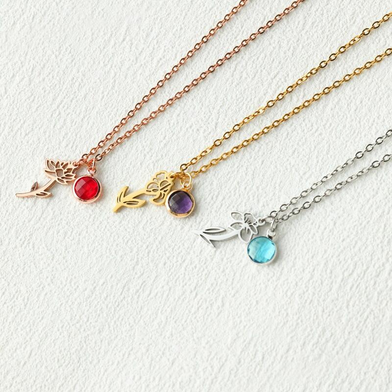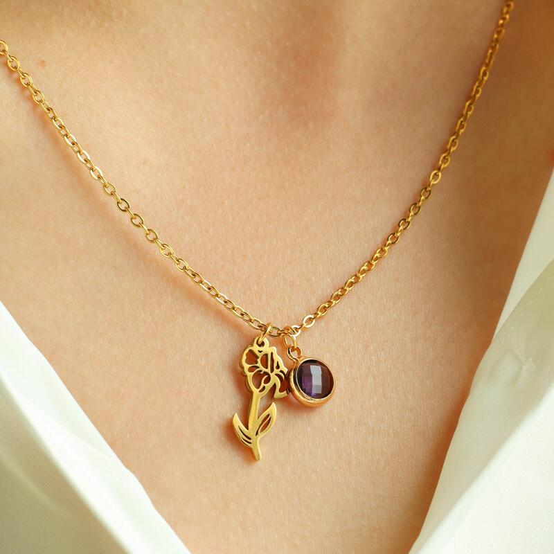 Gepersonaliseerd geboortedag-bloemen-halsketting Met geboortesteen Uitstekend geboortedagscadeau voor oma