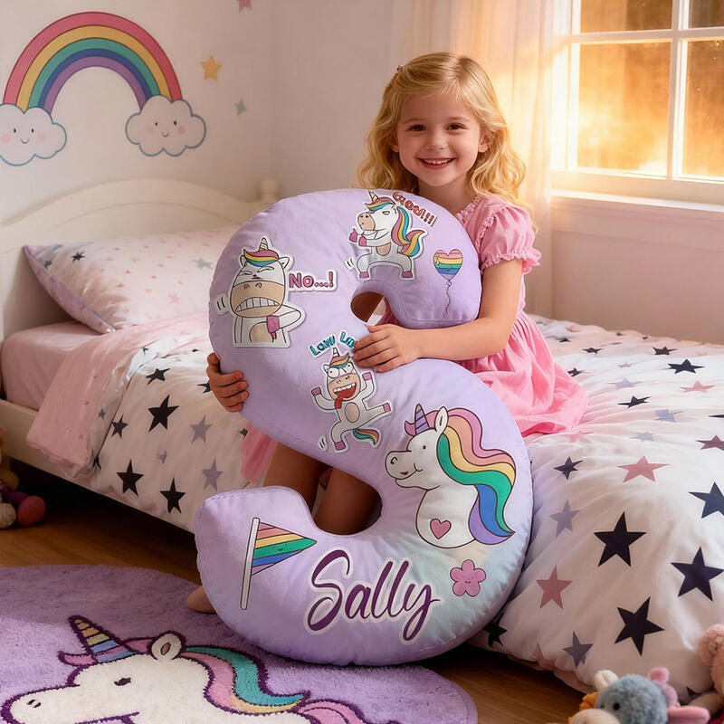Gepersonaliseerd cartoonhoofdkussen met grappig eenhoornpatroon een speciaal cadeau voor meisjes
