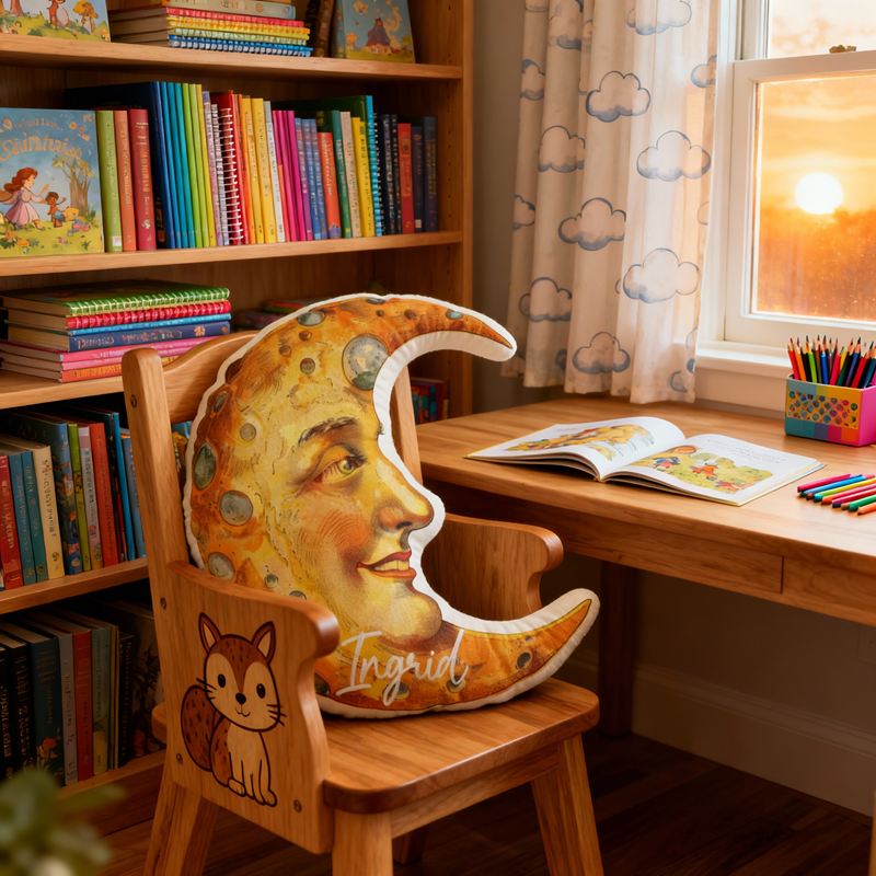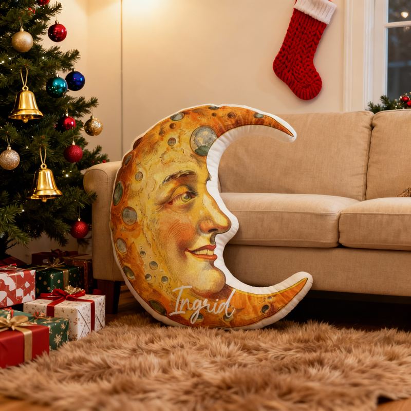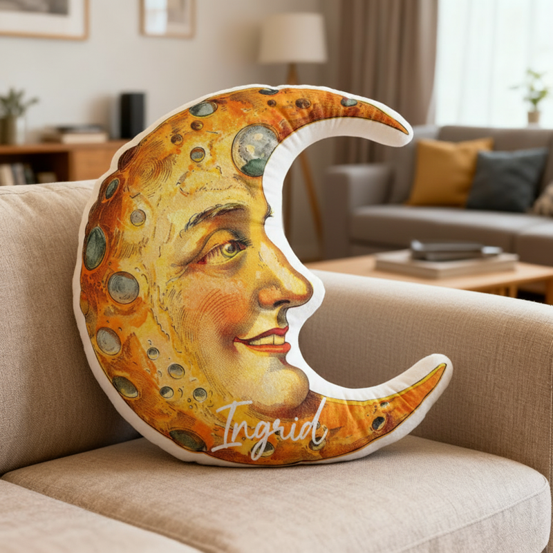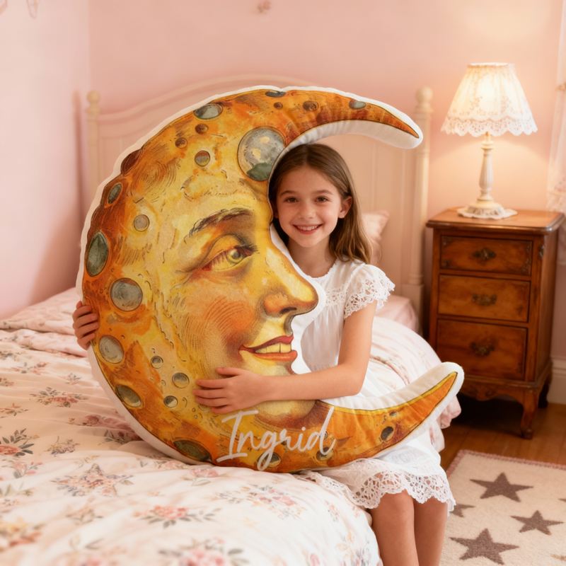 Gepersonaliseerd kussen in cartoonvorm met maanpatroon Creatief cadeau voor kinderen