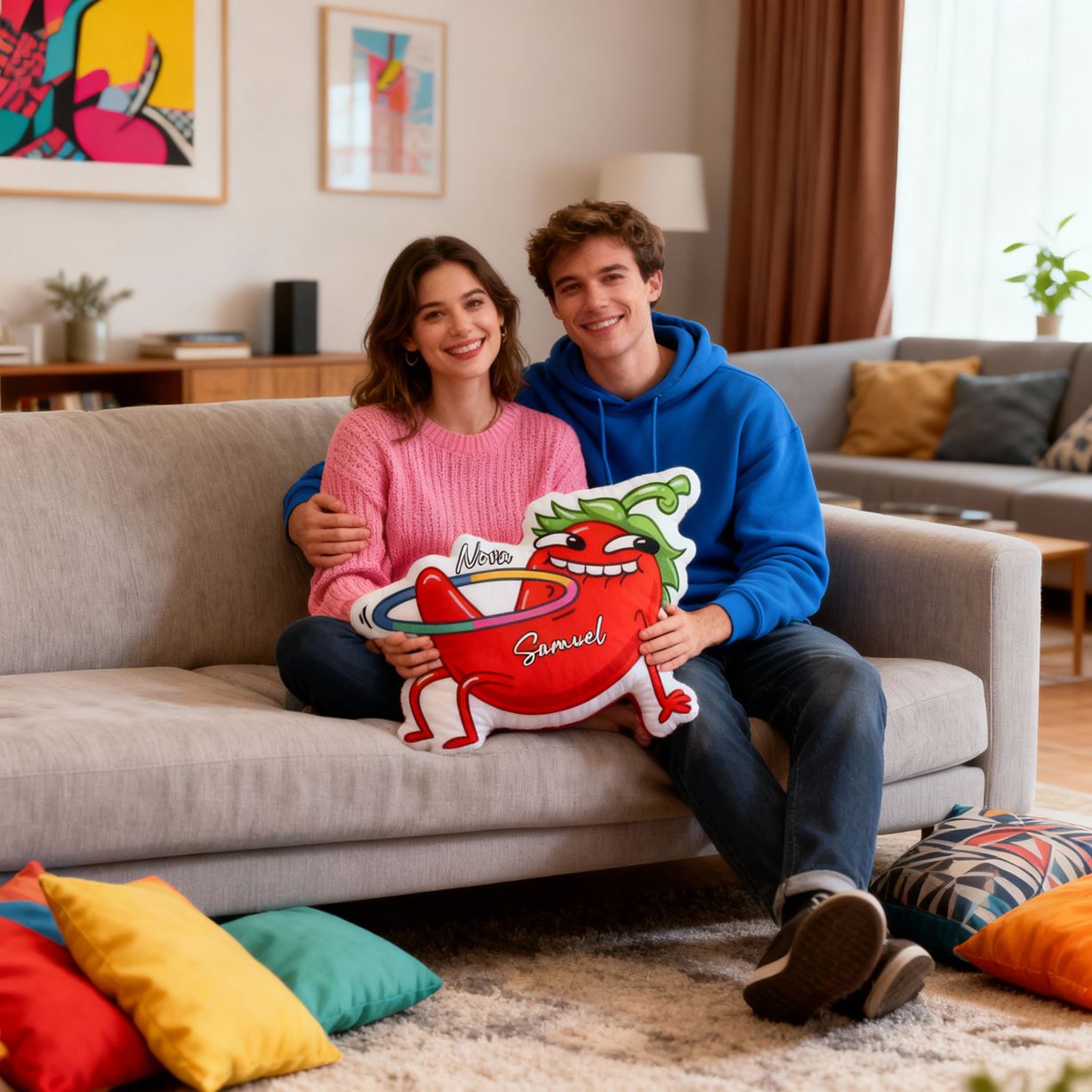 Gepersonaliseerd chilipeper kussen met cartoonprint grappig grapje voor Valentijnsdag