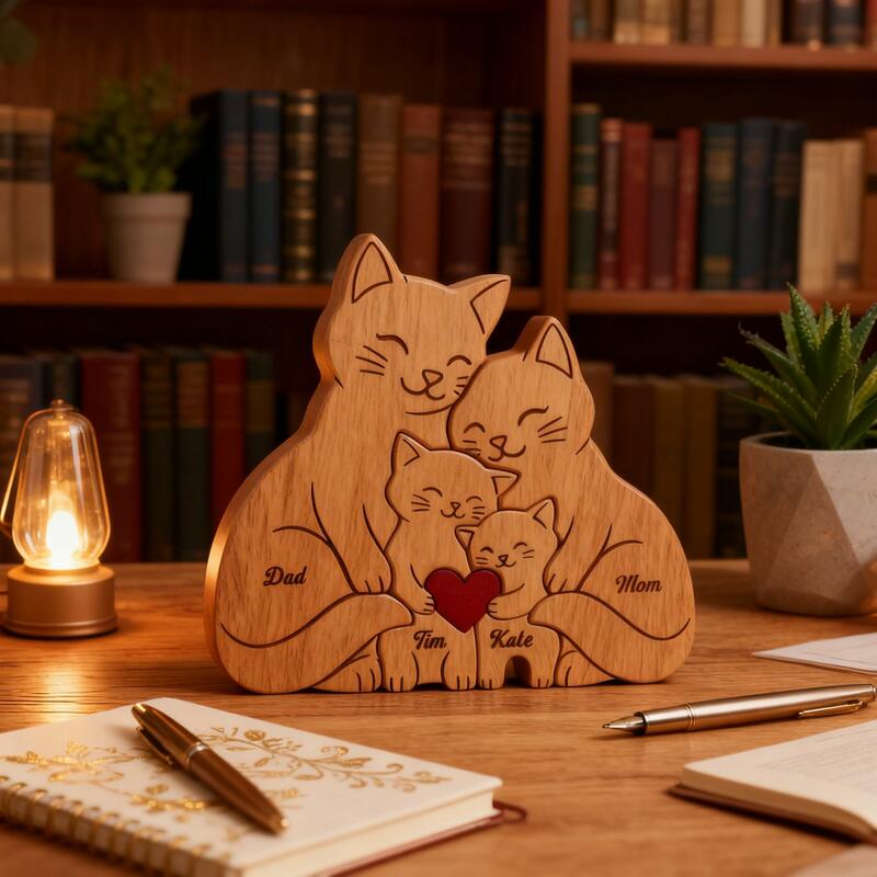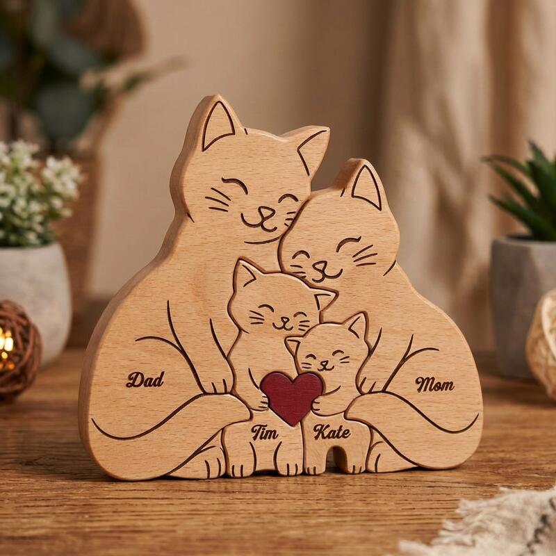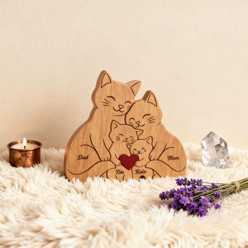 Gepersonaliseerde schattige houten kattenpuzzel hartverwarmend cadeau voor mama