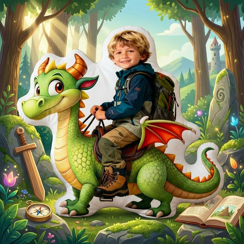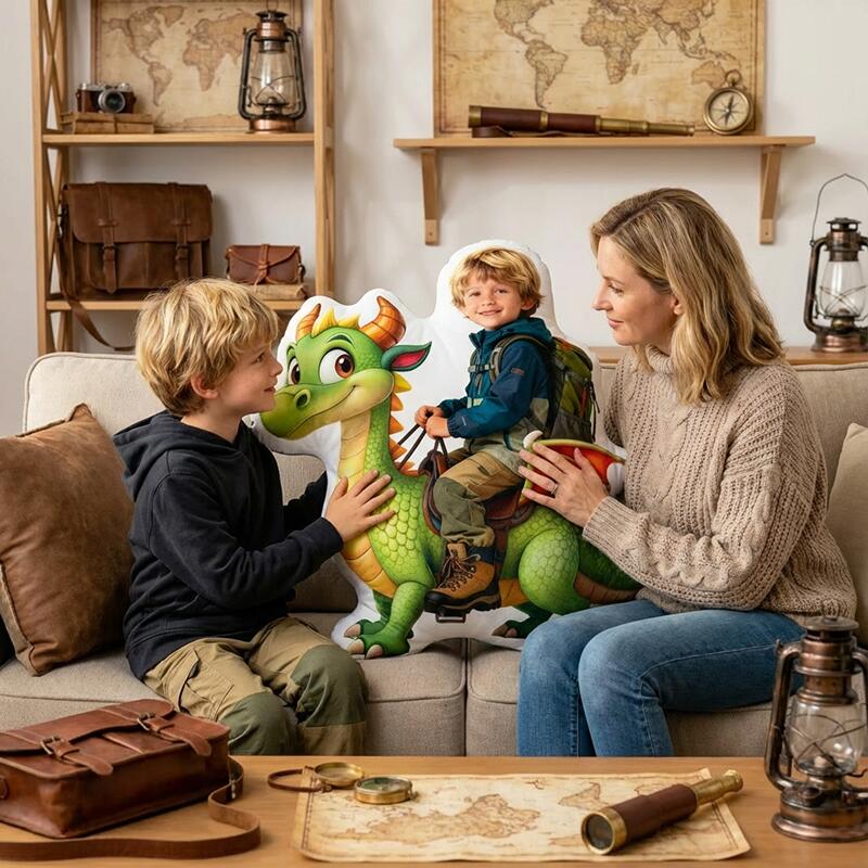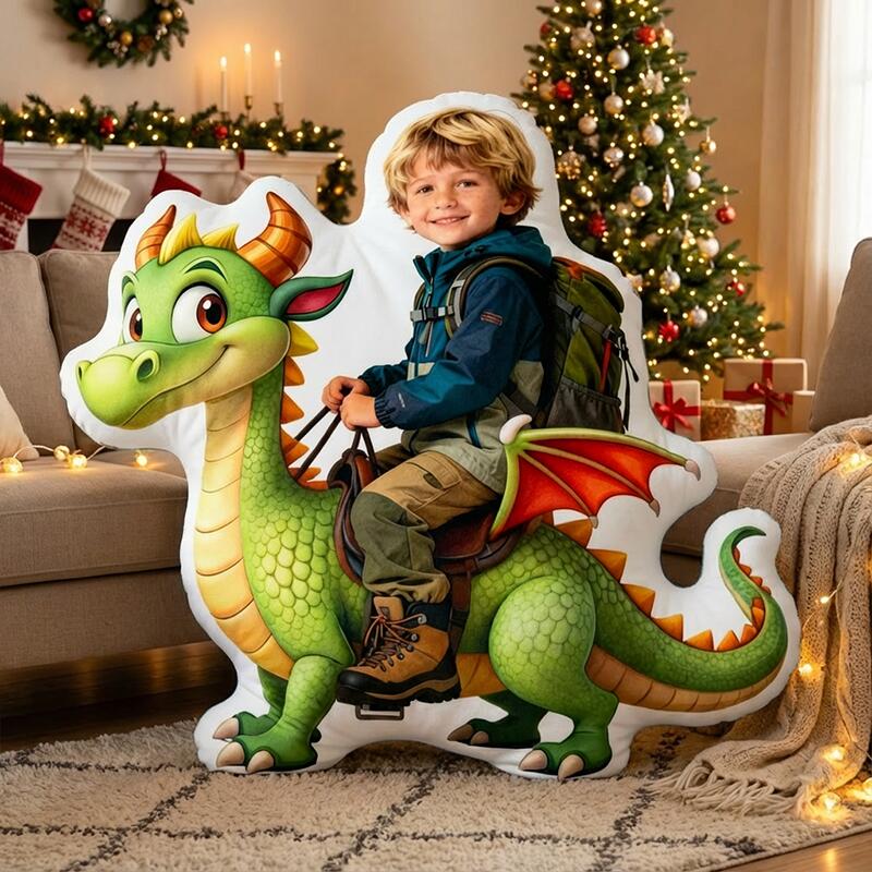 Personalized Face Portrait Pillow with Cute Dinosaur Pattern Wonderful Gift for Kids