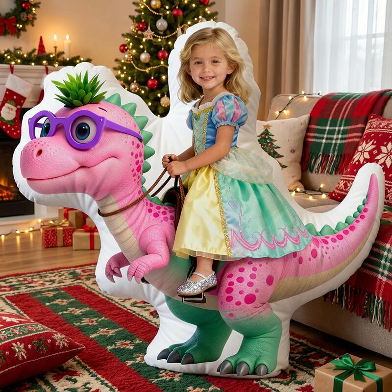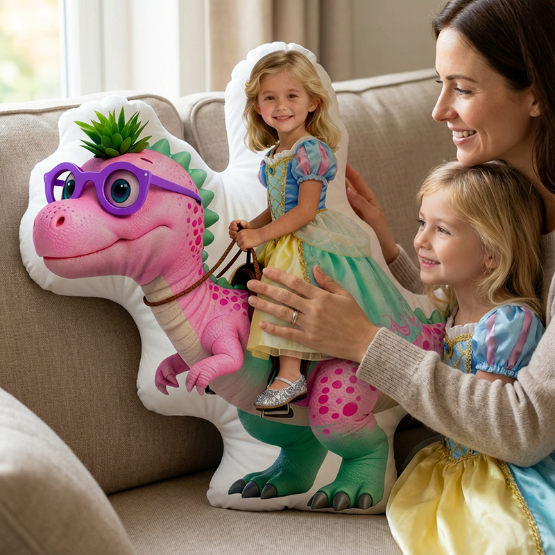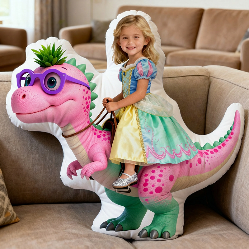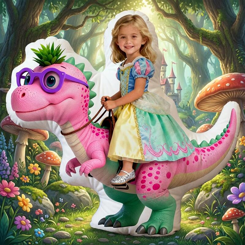 Personalized Face Portrait Pillow with Dinosaur Pattern Practical Gift for Children