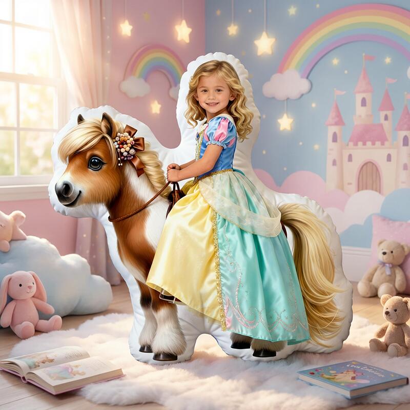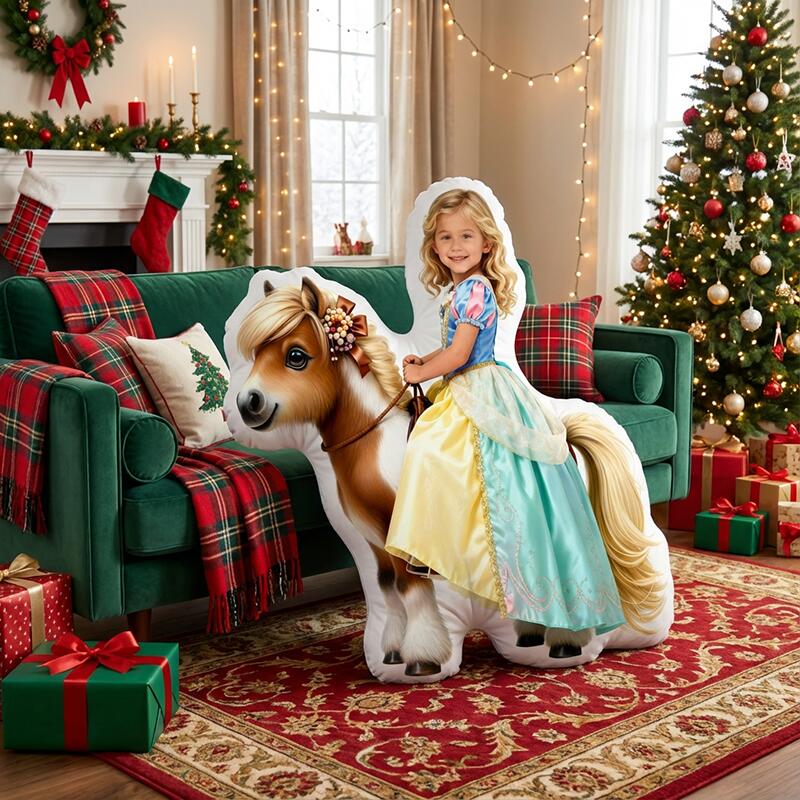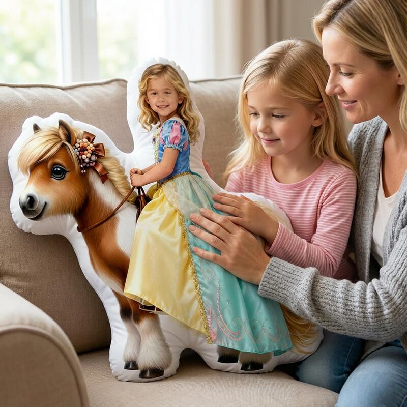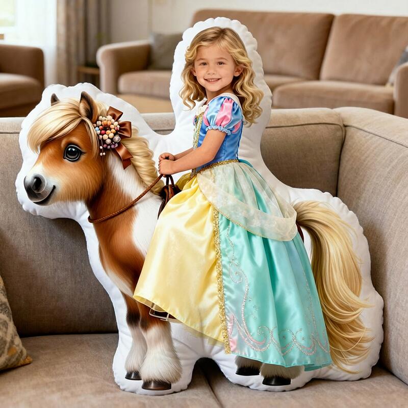 Personalized Face Portrait Pillow with Horse Pattern Cute Christmas Gift