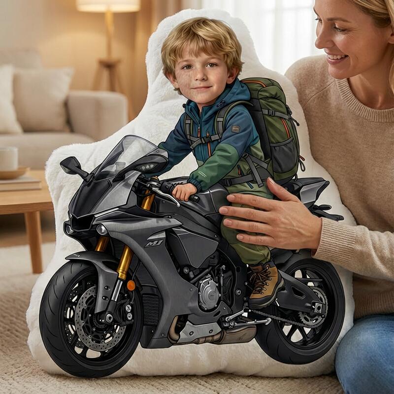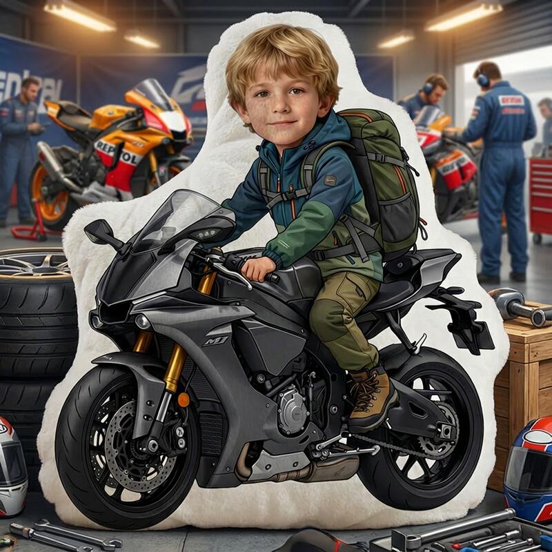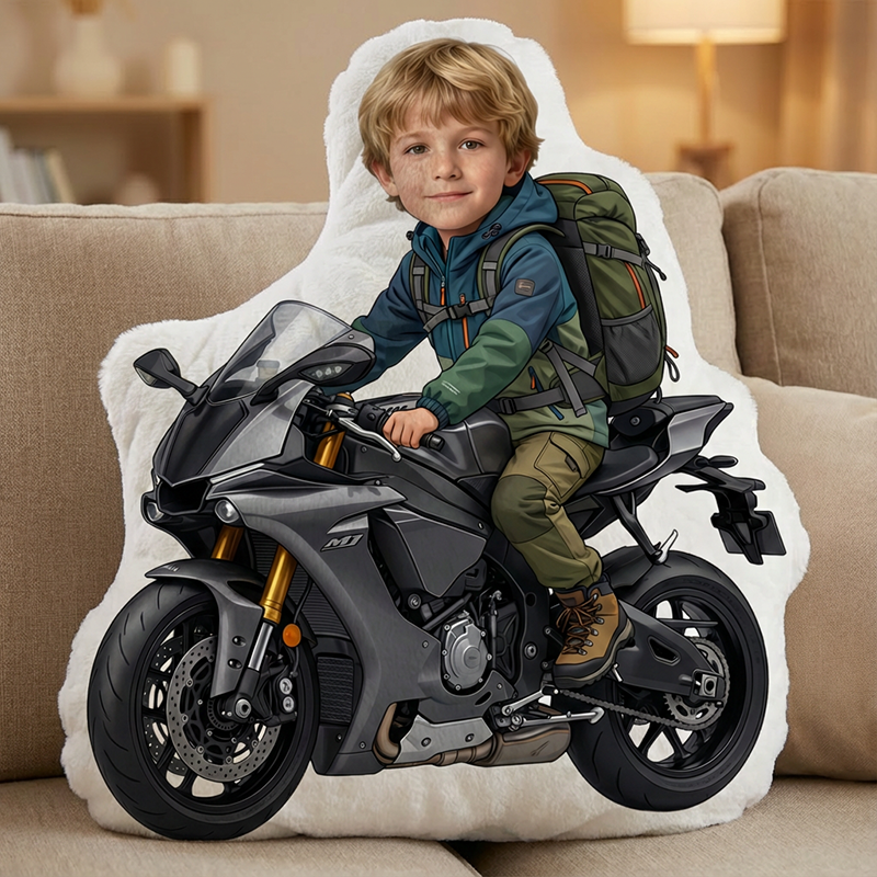 Gepersonaliseerd kussen met portret en motorontwerp Populair cadeau voor kinderen