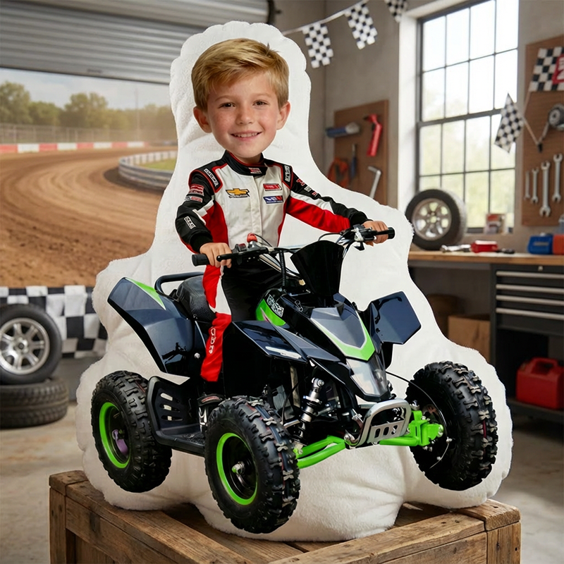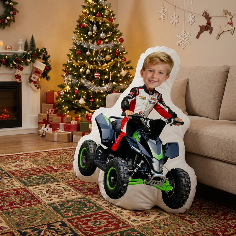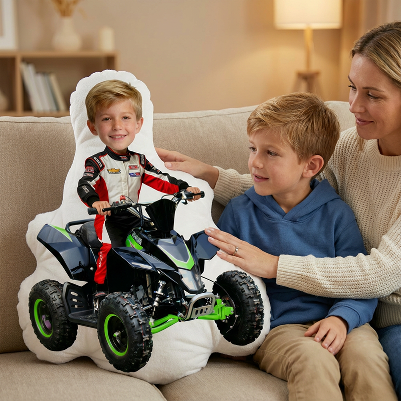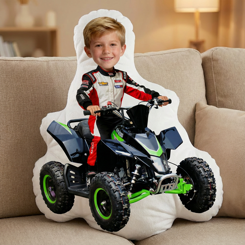Gepersonaliseerd kussen met portret en mountainbikepatroon Interessant cadeau voor uw zoon