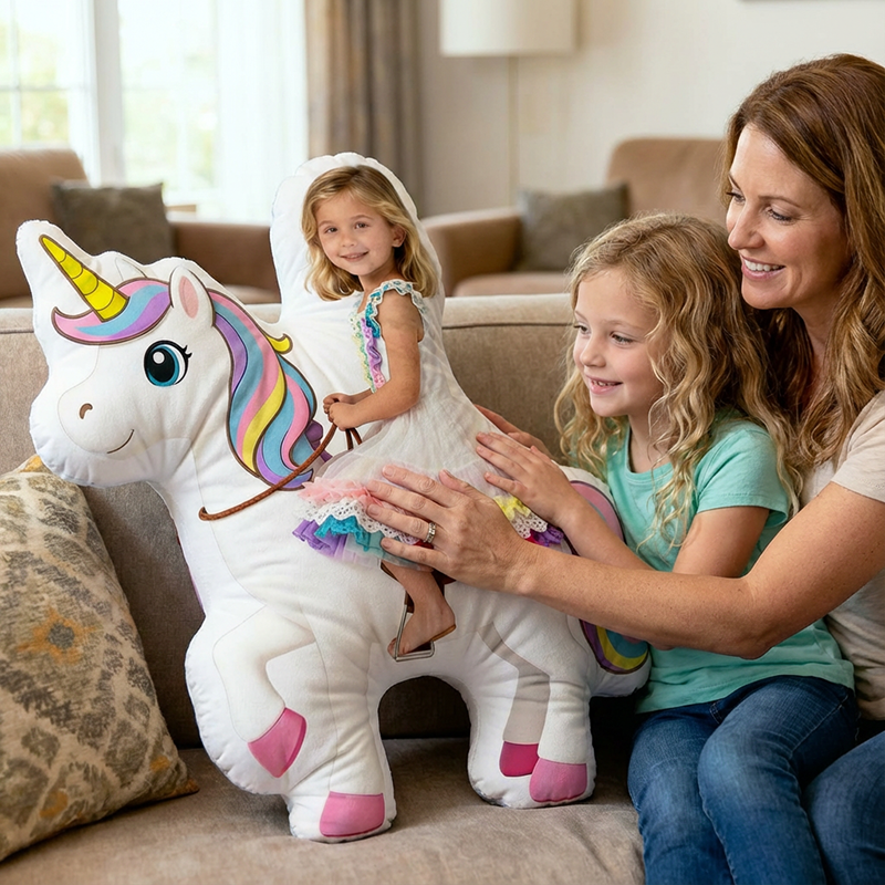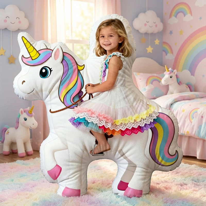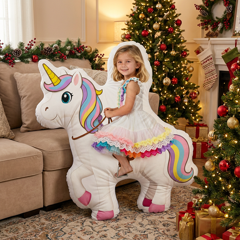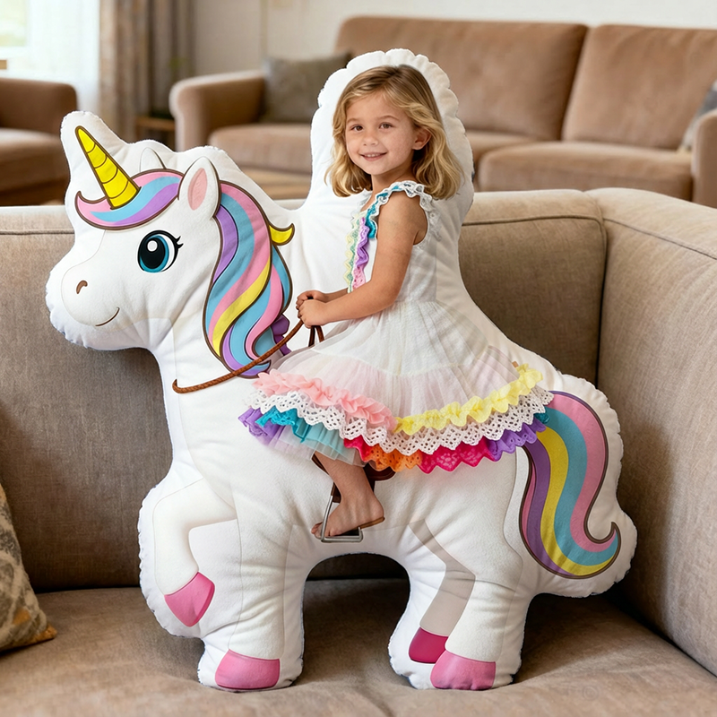 Personalized Face Portrait Pillow with Unicorn Pattern Special Present for Girls