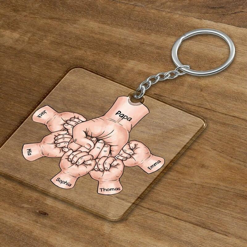 Gepersonaliseerde vuist sleutelhanger aangepast met de naam van het kind Vaderdag Gift
