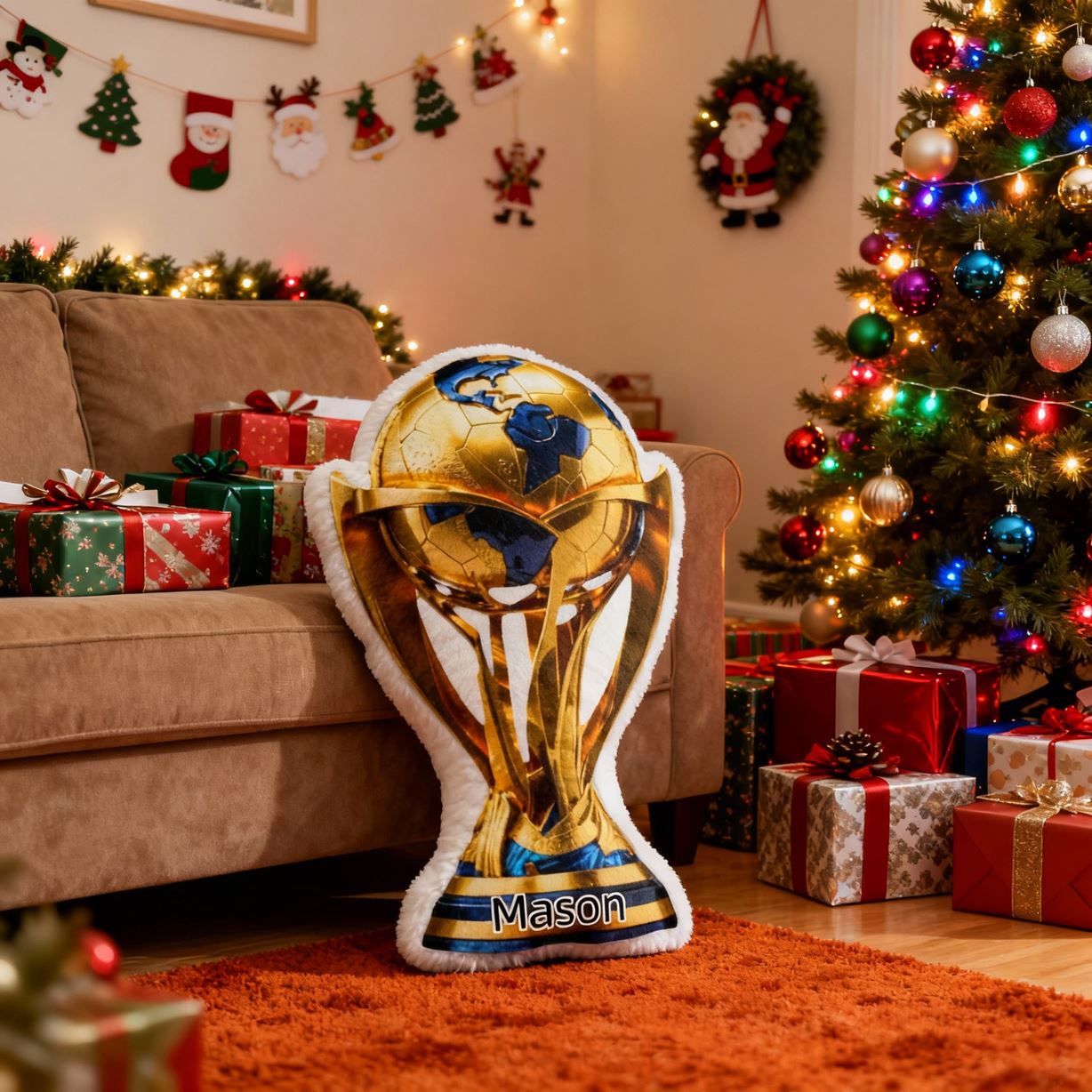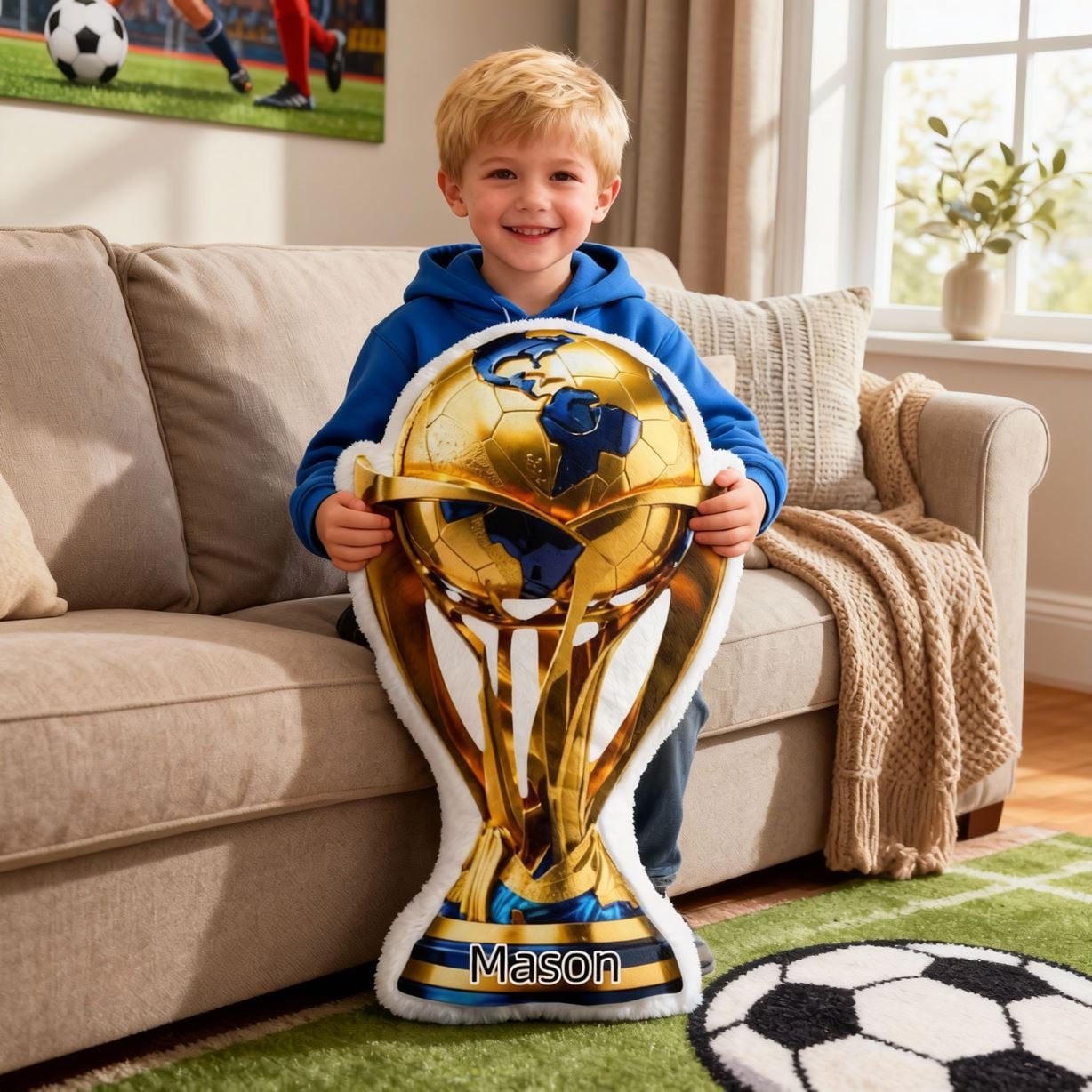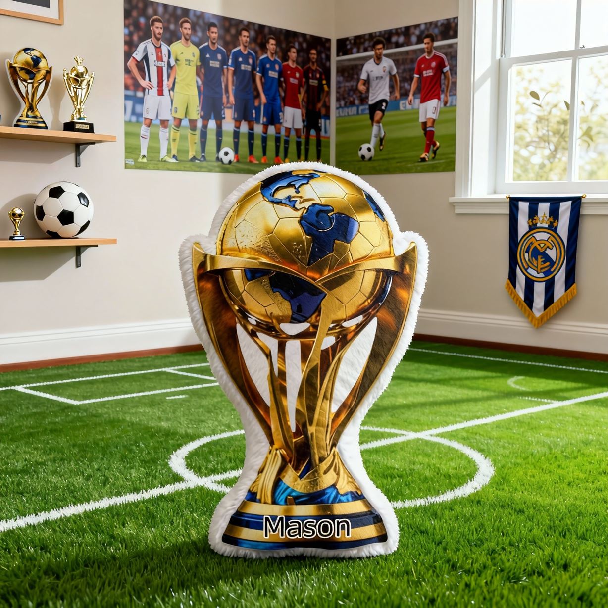 Gepersonaliseerd gouden voetbal trofee kussen met aanpasbare naam Vaderdag cadeau voor papa