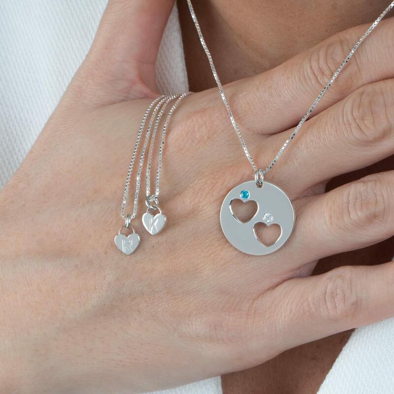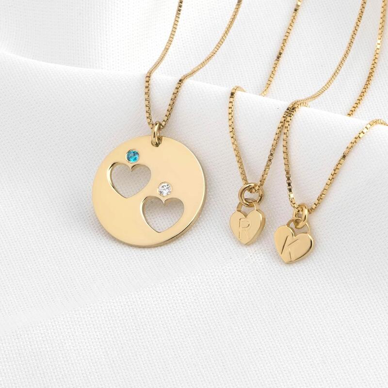 Gepersonaliseerde hartvormige hanger met letter geboortesteen moeder-dochter ketting set voor mama