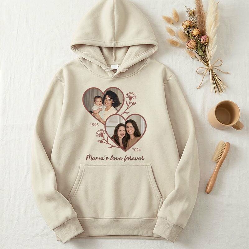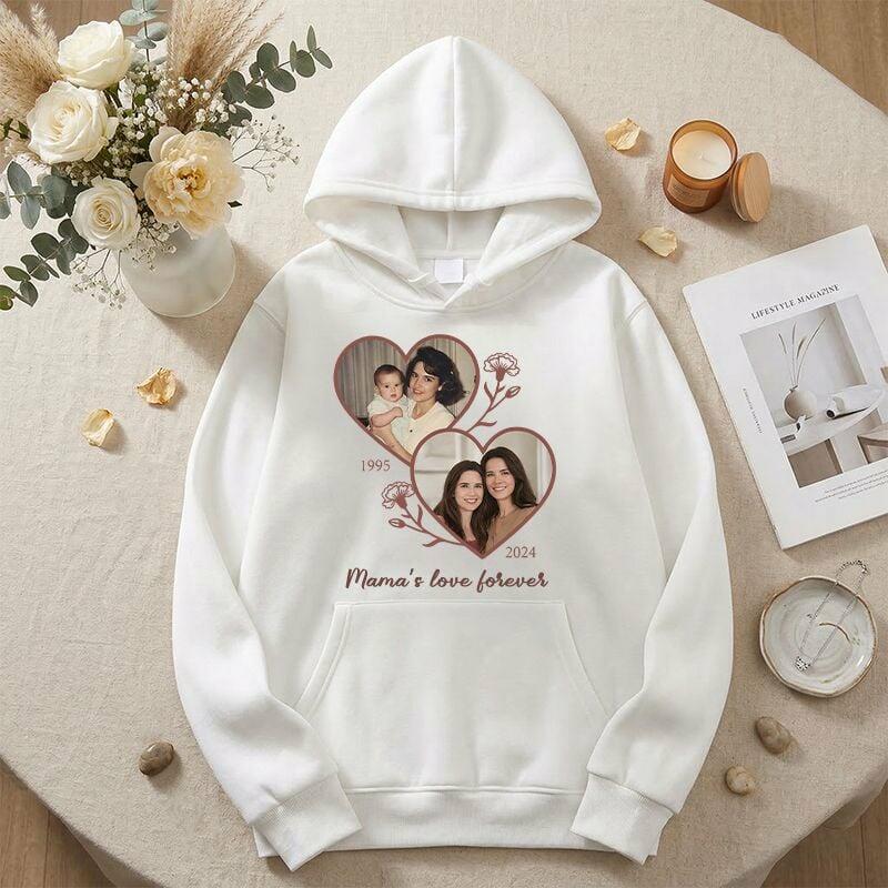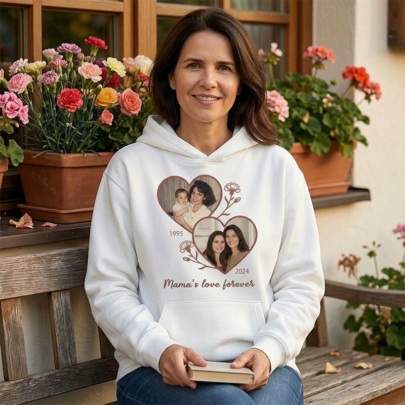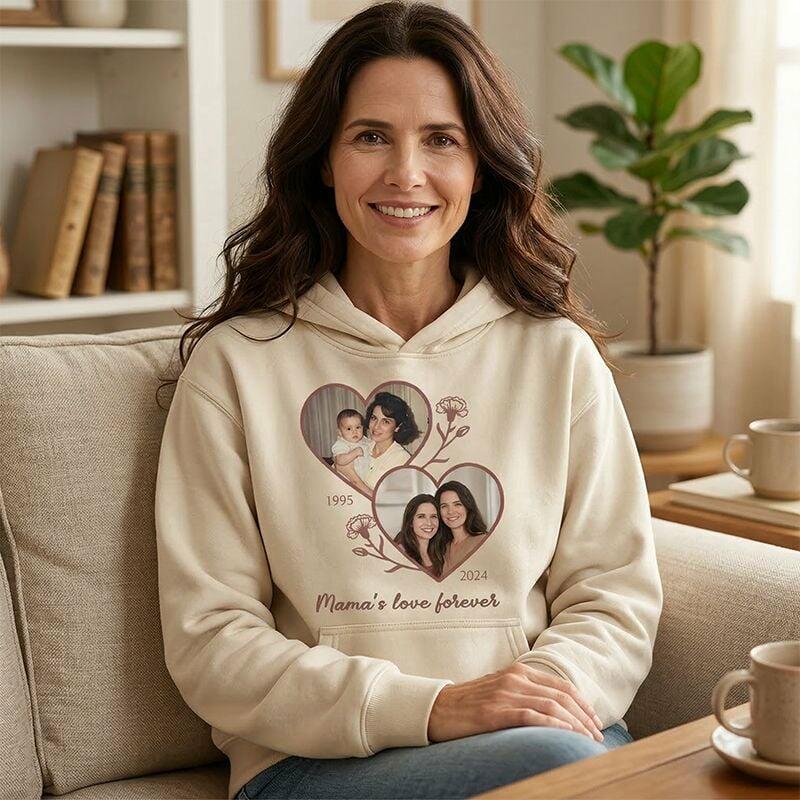 Gepersonaliseerde hoodie met foto's en tekst Door de tijd beproefde liefde Ontwerp Betekenisvol cadeau voor Moederdag