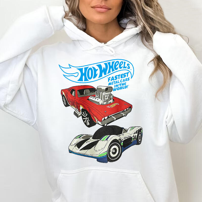 Gepersonaliseerde hoodie Hot Wheels Snelle metalen auto's Coole bedrukking Aantrekkelijk cadeau voor autoliefhebbers