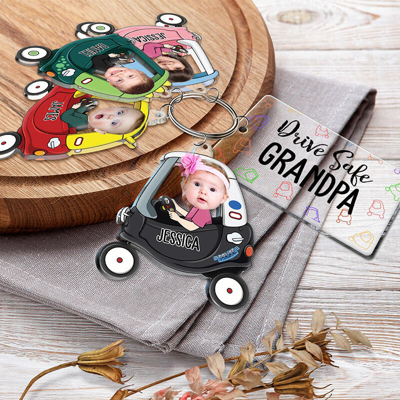 Gepersonaliseerde sleutelhanger aangepaste foto Optioneel Patroon Drive Safe Liefdevol vaderdag cadeau