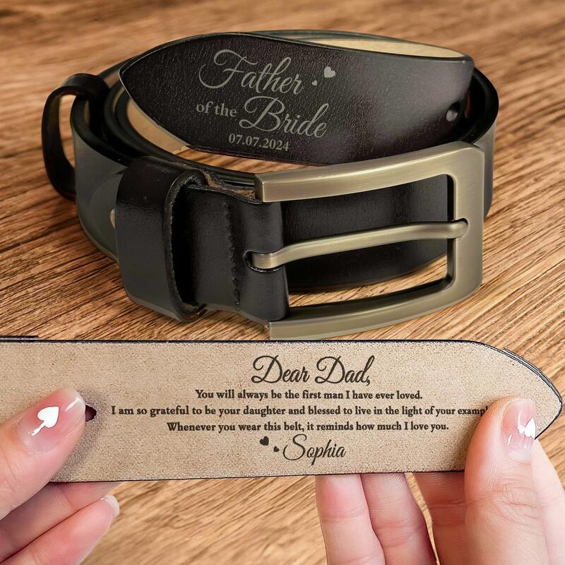 Gepersonaliseerde leren riem aangepaste naam bruiloft bruid dank u cadeau voor papa