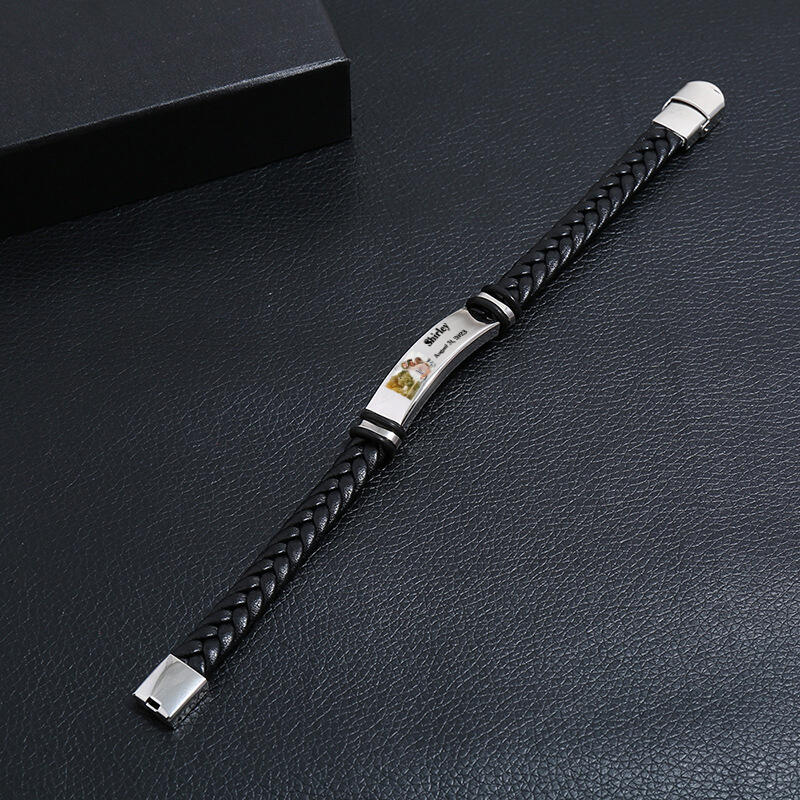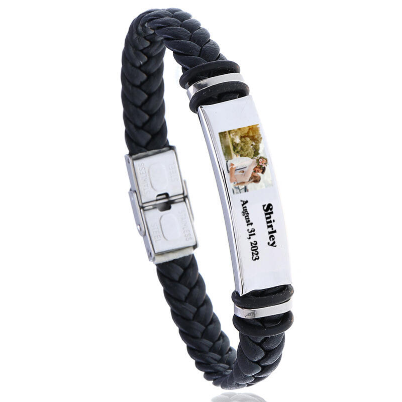 Gepersonaliseerde leren armband voor mannen met foto en naam Cool cadeau voor echtgenoot