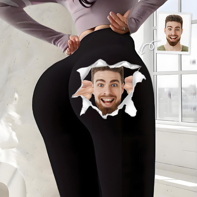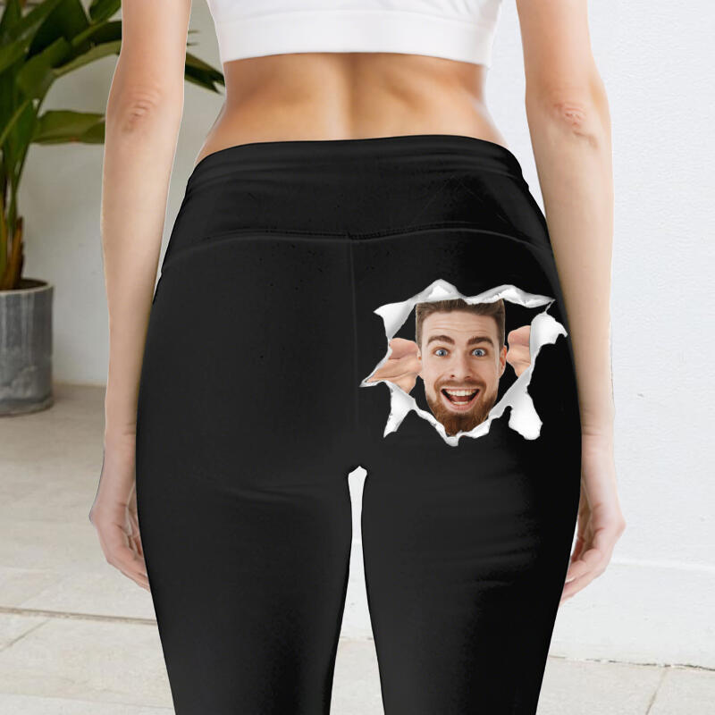 Gepersonaliseerde leggings met foto van een hoofd leuk scheurpatroon creatief cadeau voor haar geliefden