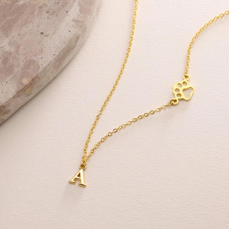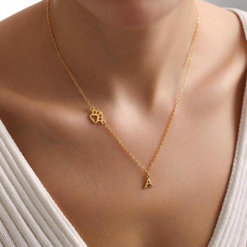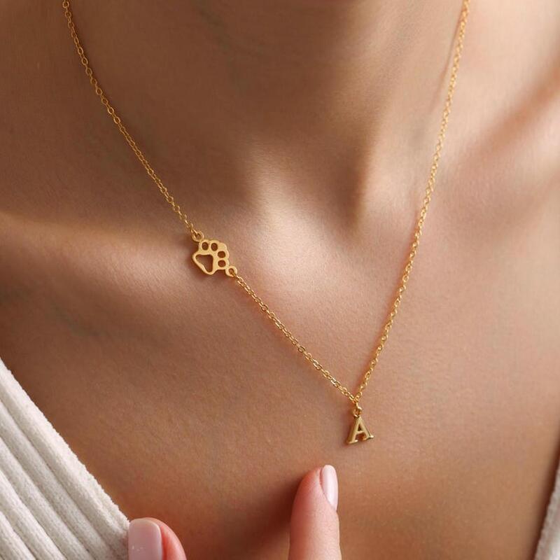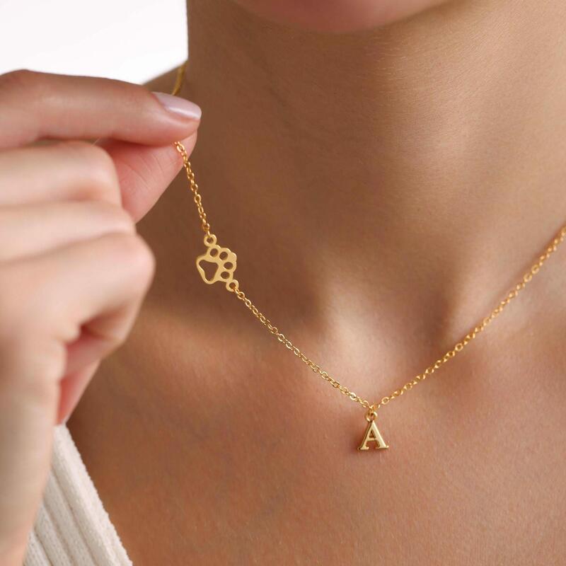 Gepersonaliseerde letterketting met pootafdruk Schattig cadeau voor dierenliefhebbers