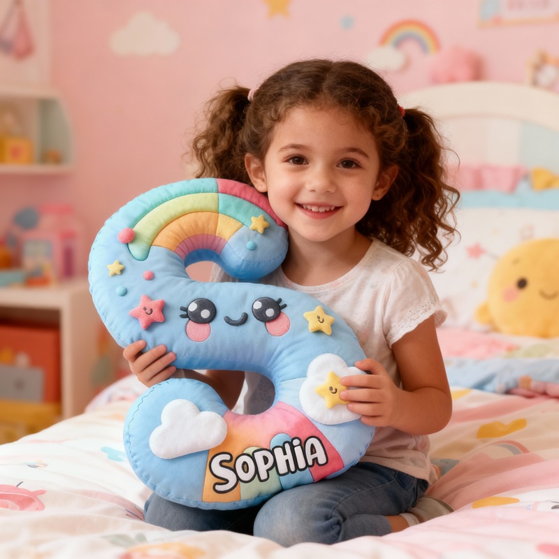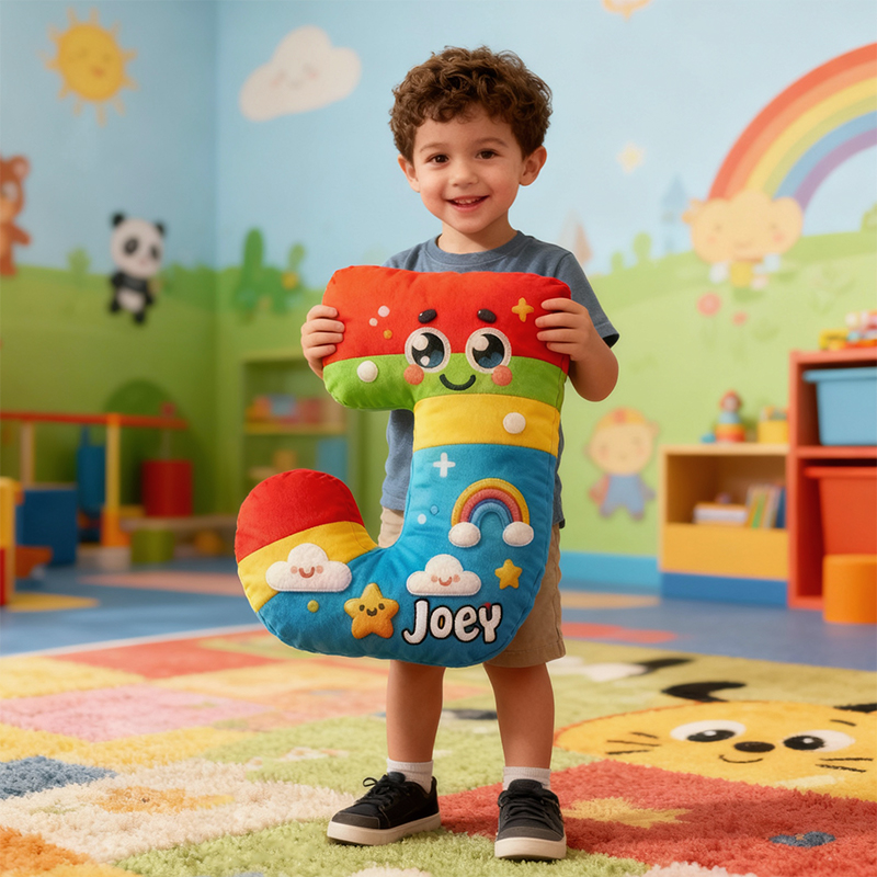 Gepersonaliseerd kussen in de vorm van een letter met kleurrijke spelelementen schattig ontwerp cadeau voor kinderen