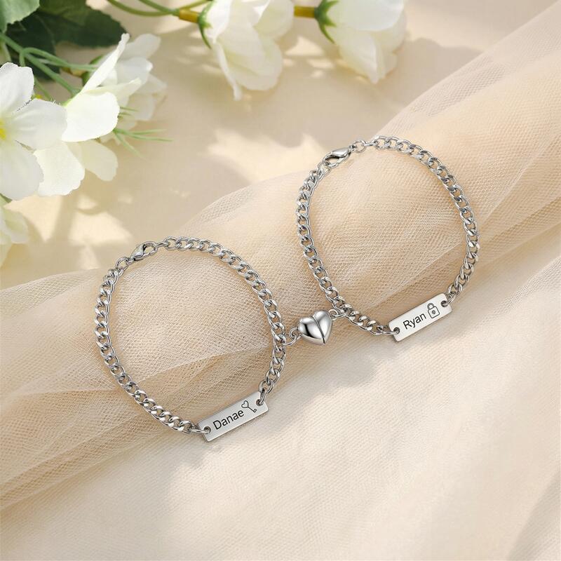 Gepersonaliseerde magnetische gepaarde armband met gepersonaliseerd slot en sleutelontwerp Perfect cadeau voor koppels