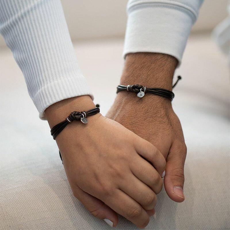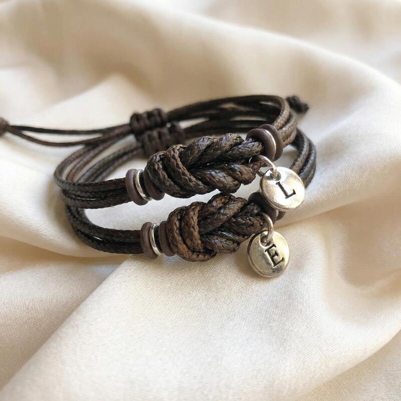 Gepersonaliseerde bijpassende armband met liefdesknoop en gepersonaliseerde letters Betekenisvol cadeau voor koppels