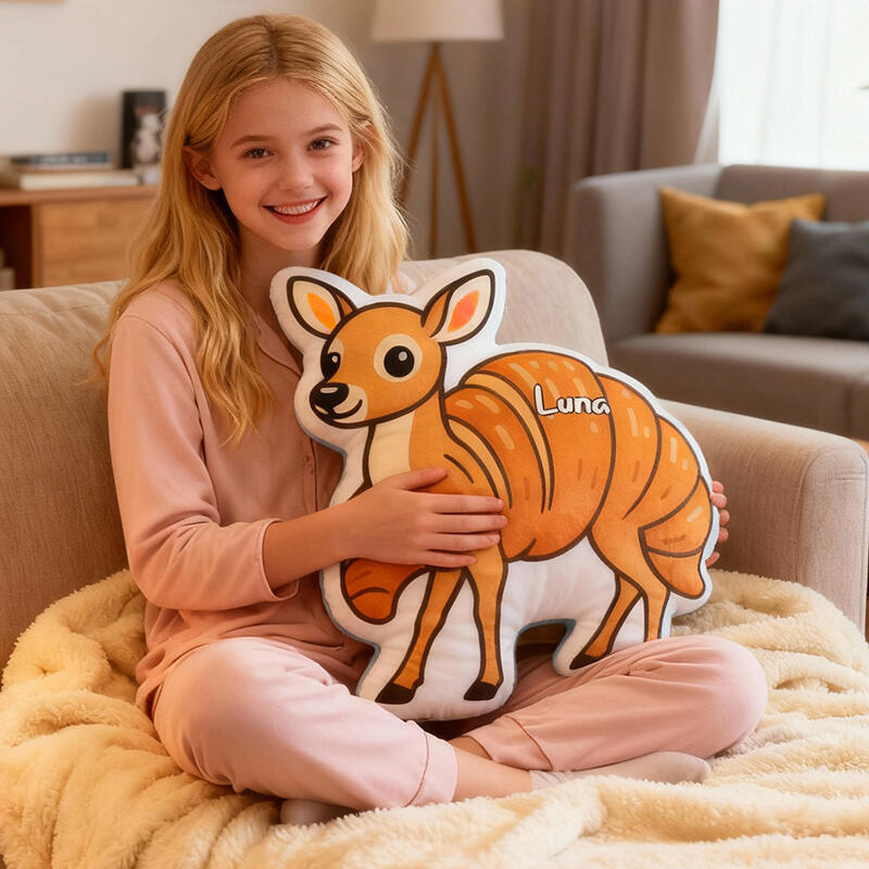 Gepersonaliseerd kussen met eigen naam en hertenpatroon Uniek cadeau voor kinderen