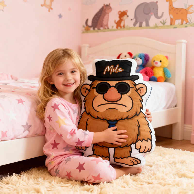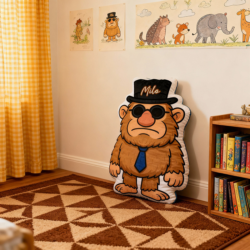 Gepersonaliseerd naamkussen met gentleman-gorilladesign Perfect cadeau voor kinderen