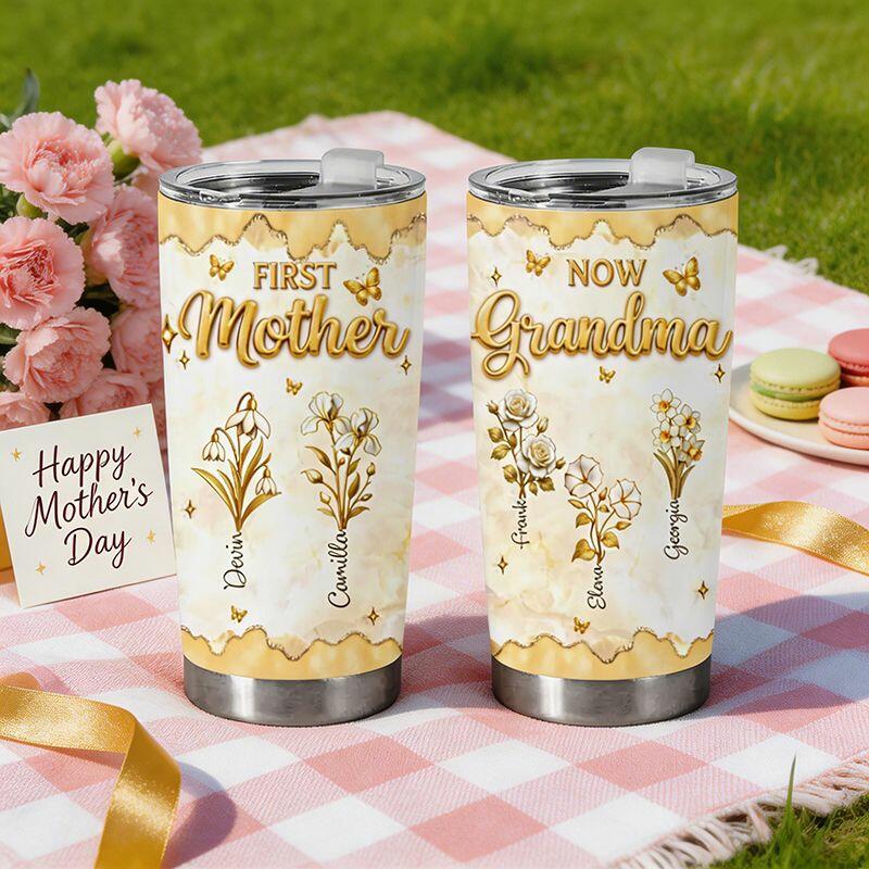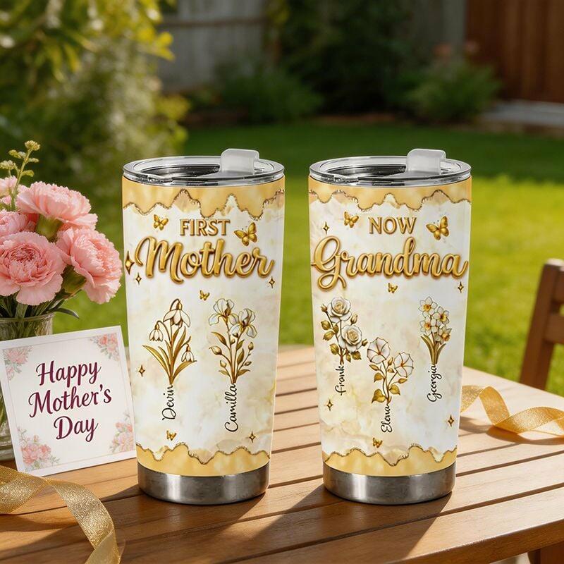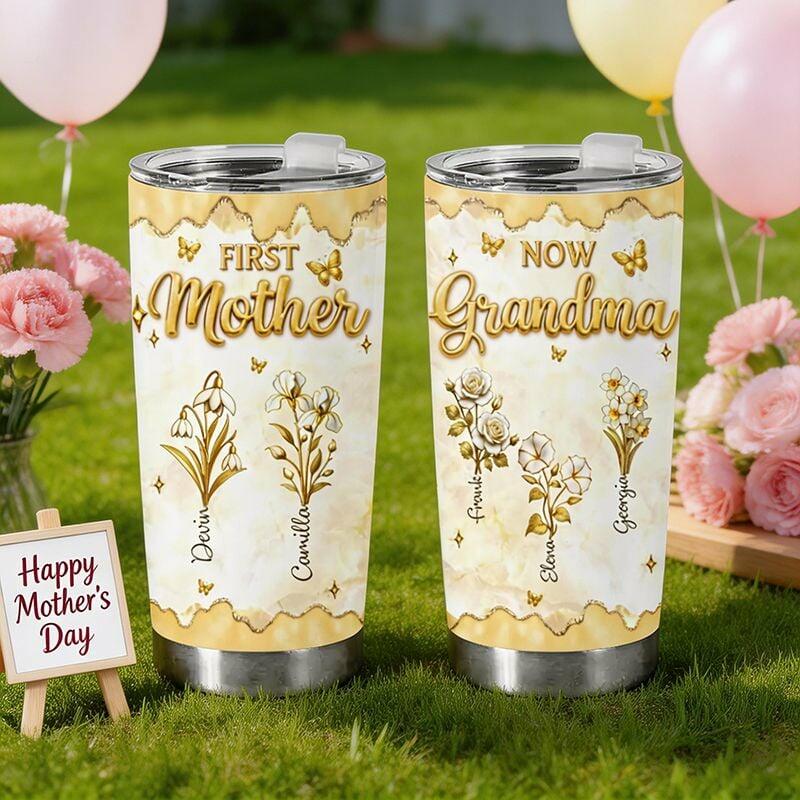 Gepersonaliseerde naam tumbler met gepersonaliseerde gouden geboortebloem Mooi cadeau voor Moederdag