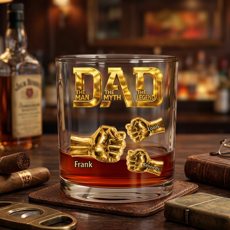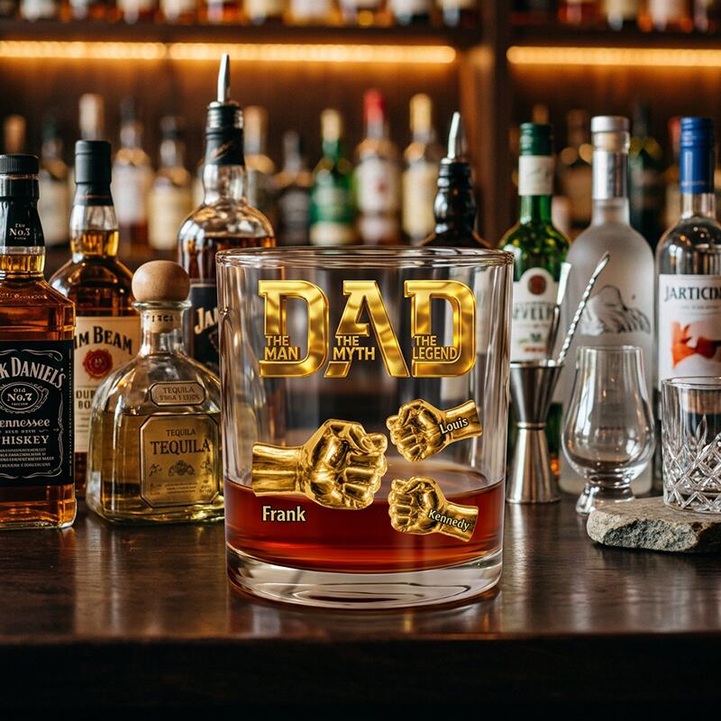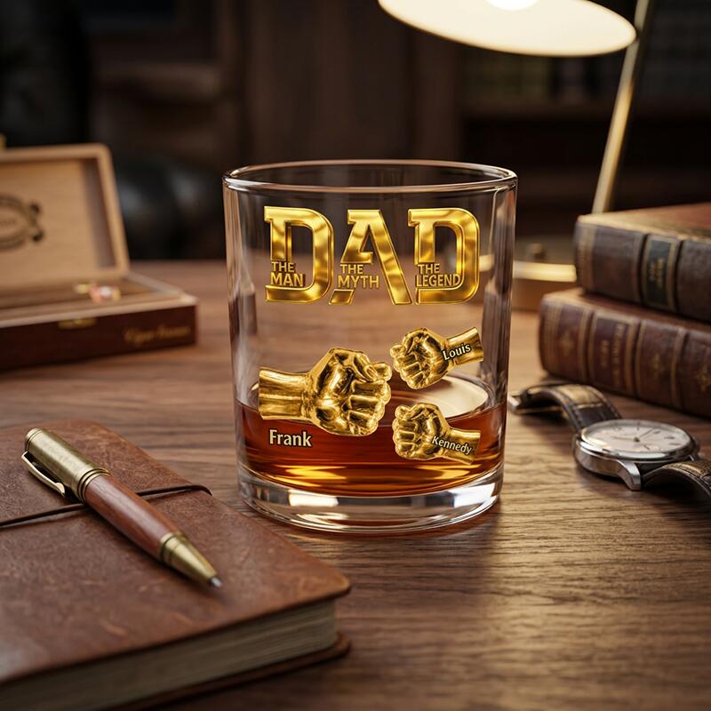 Gepersonaliseerd Naam Whiskey Glas met Vuistbump Ontwerp Klassiek Vaderdagcadeau