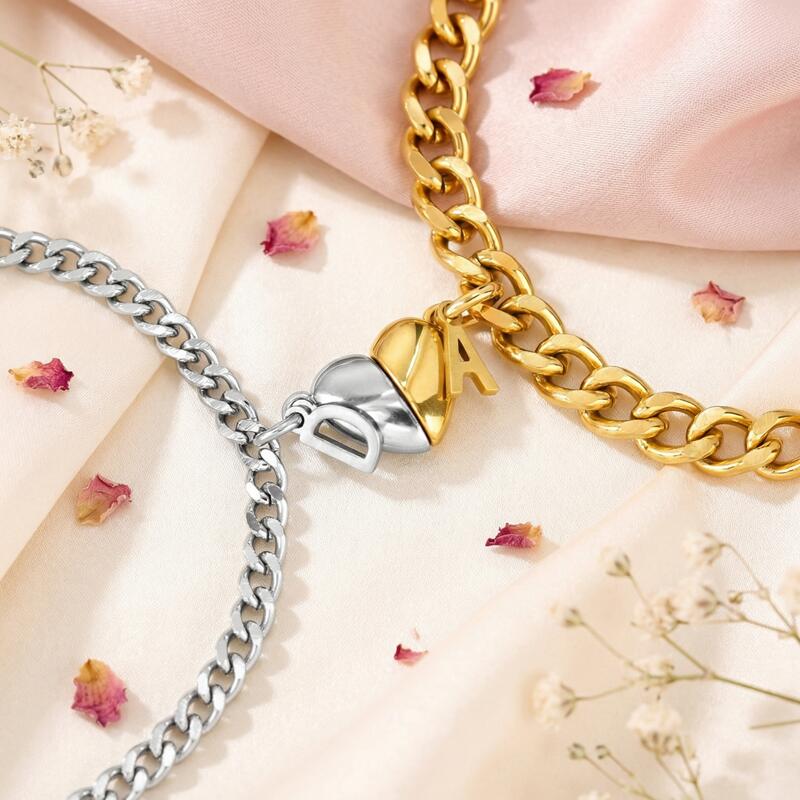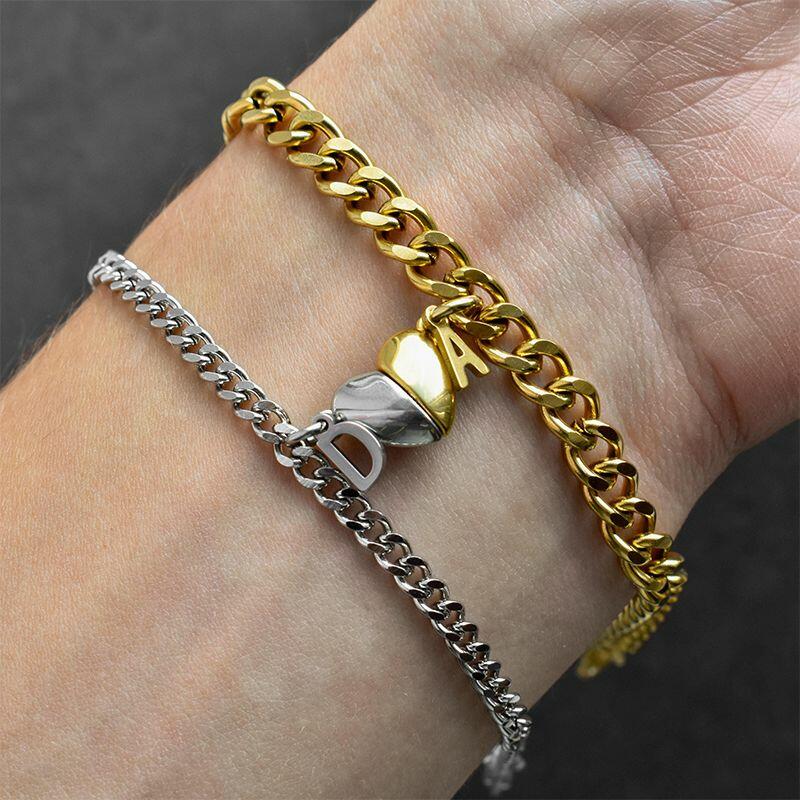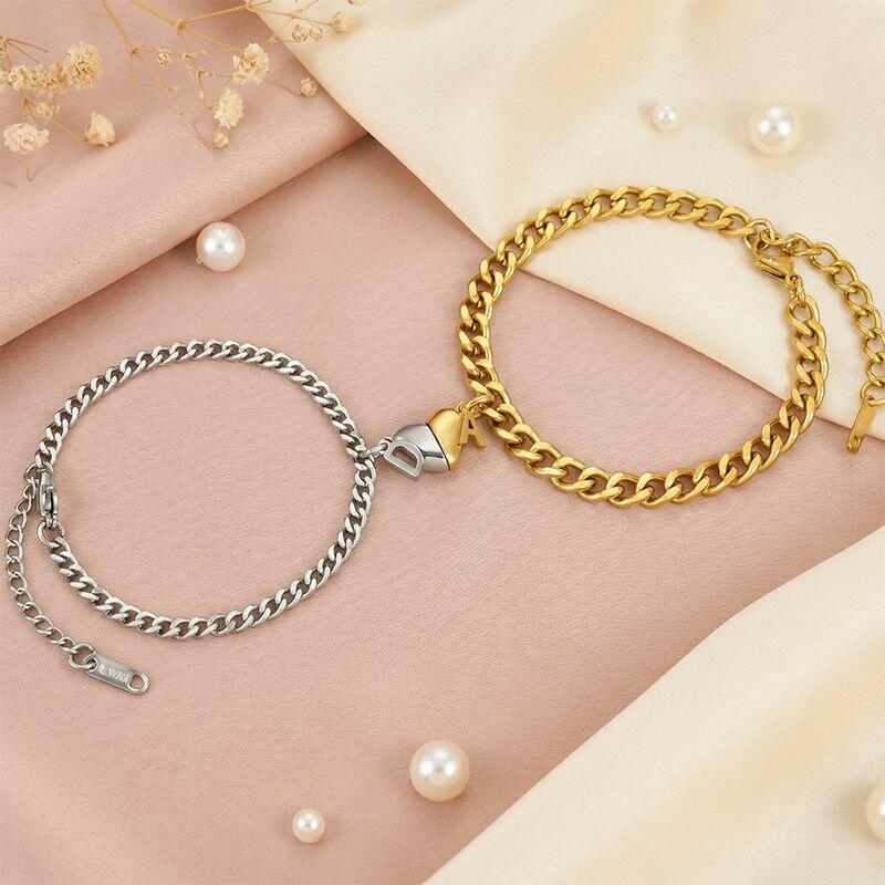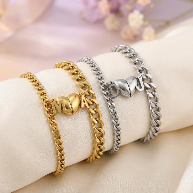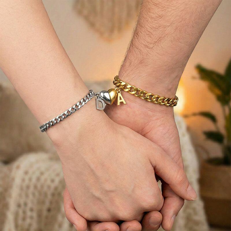 Gepersonaliseerde gepaarde armband Aangepaste letter en hartmagneetontwerp Perfect cadeau voor koppels