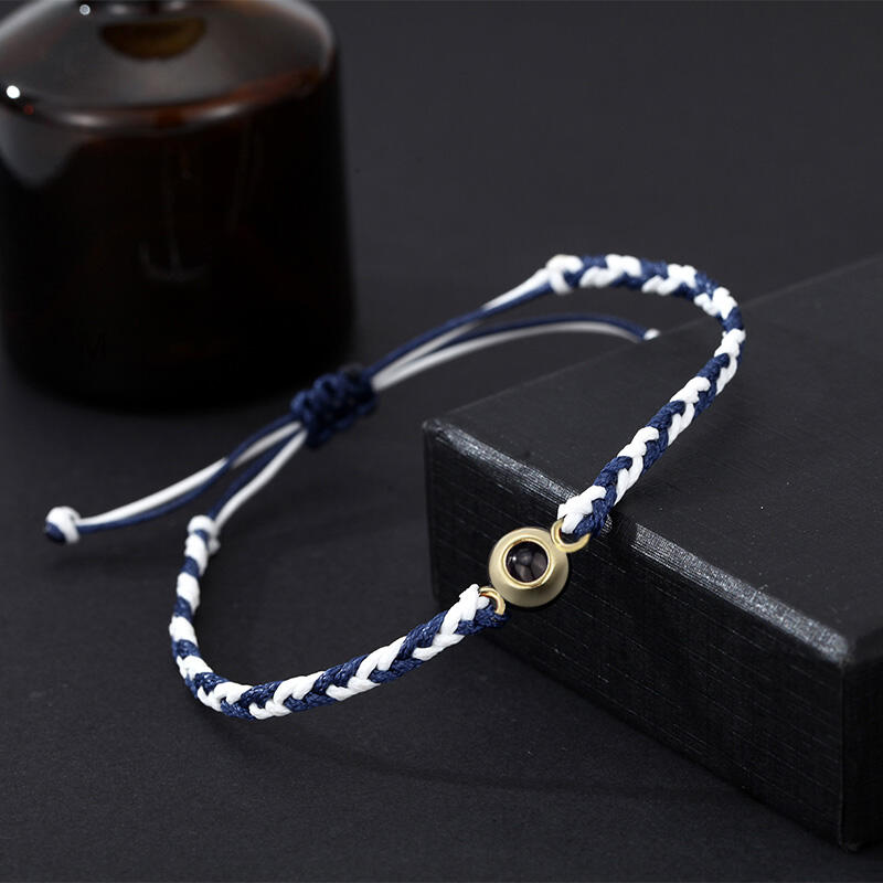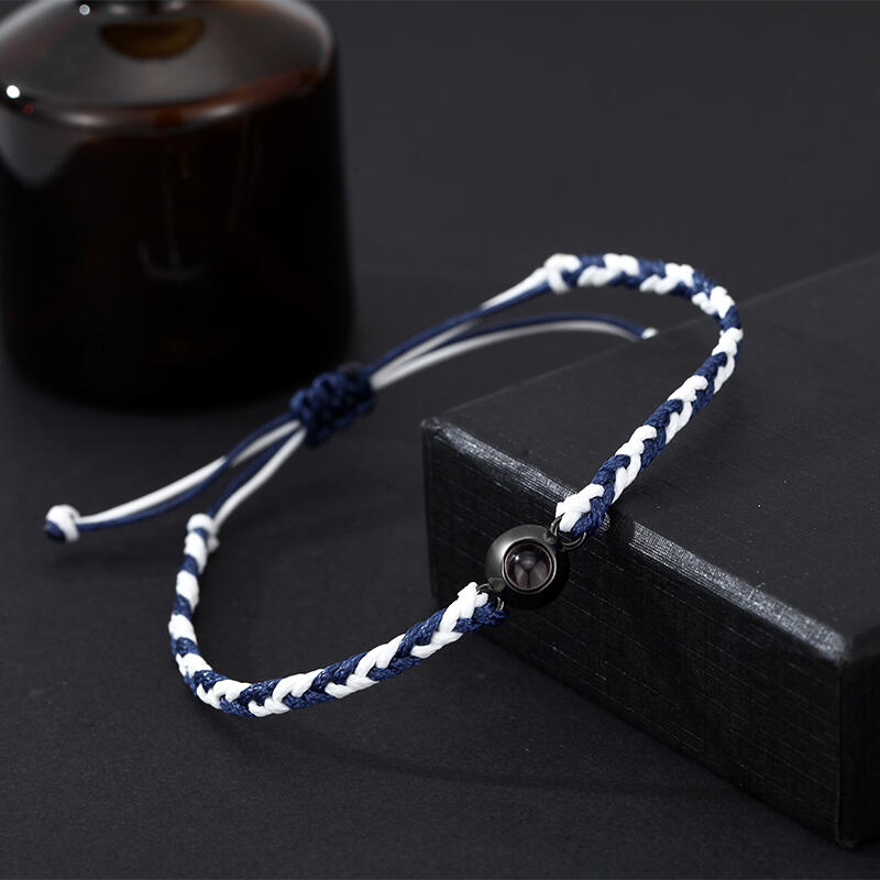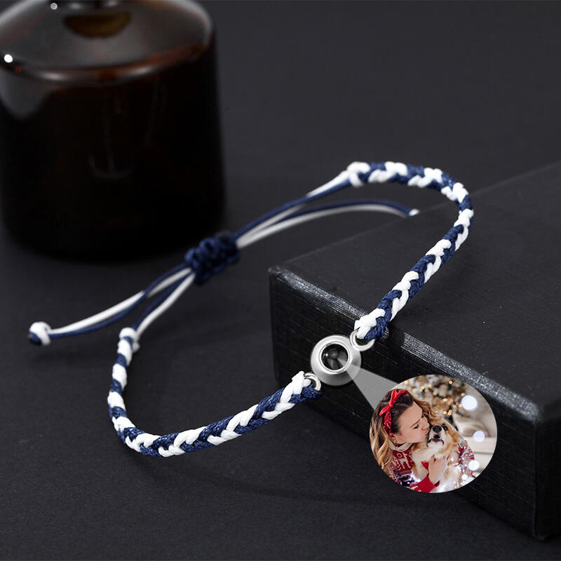 Gepersonaliseerde projectie beeld armband blauw en wit touw eenvoudig kerstcadeau voor hem