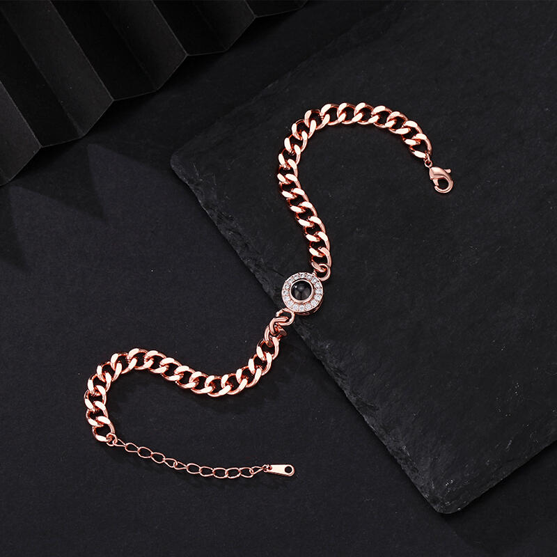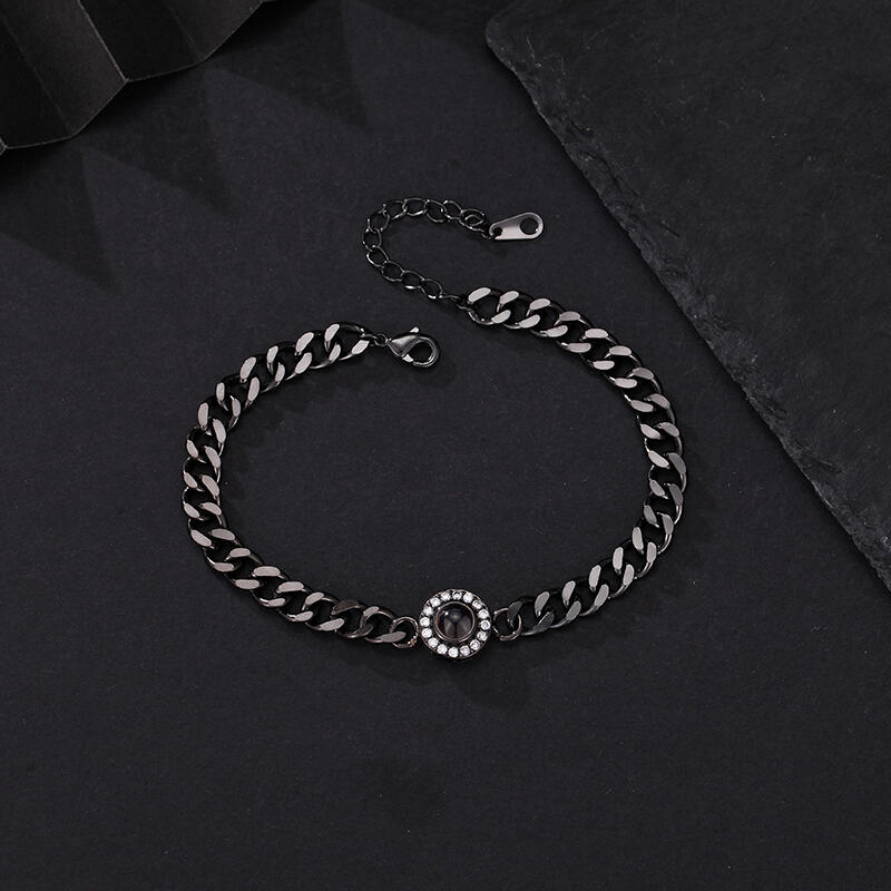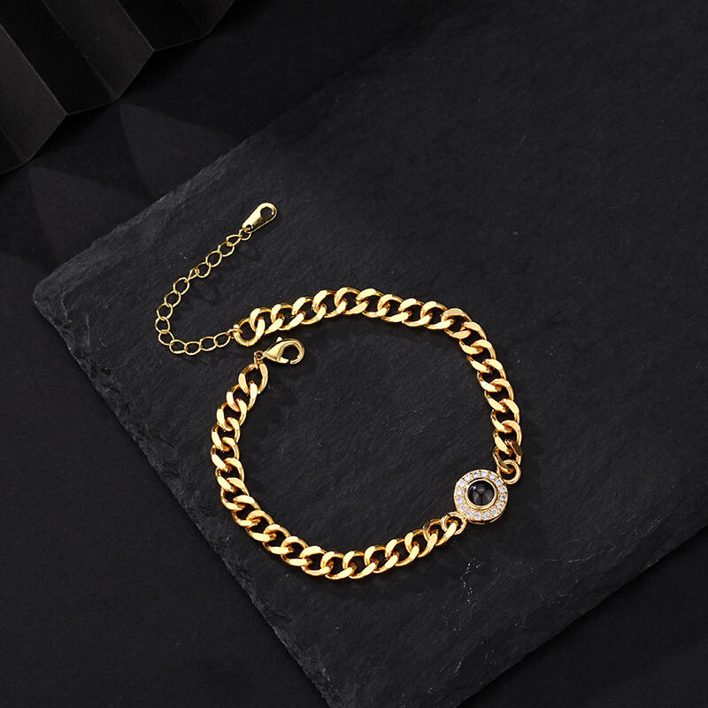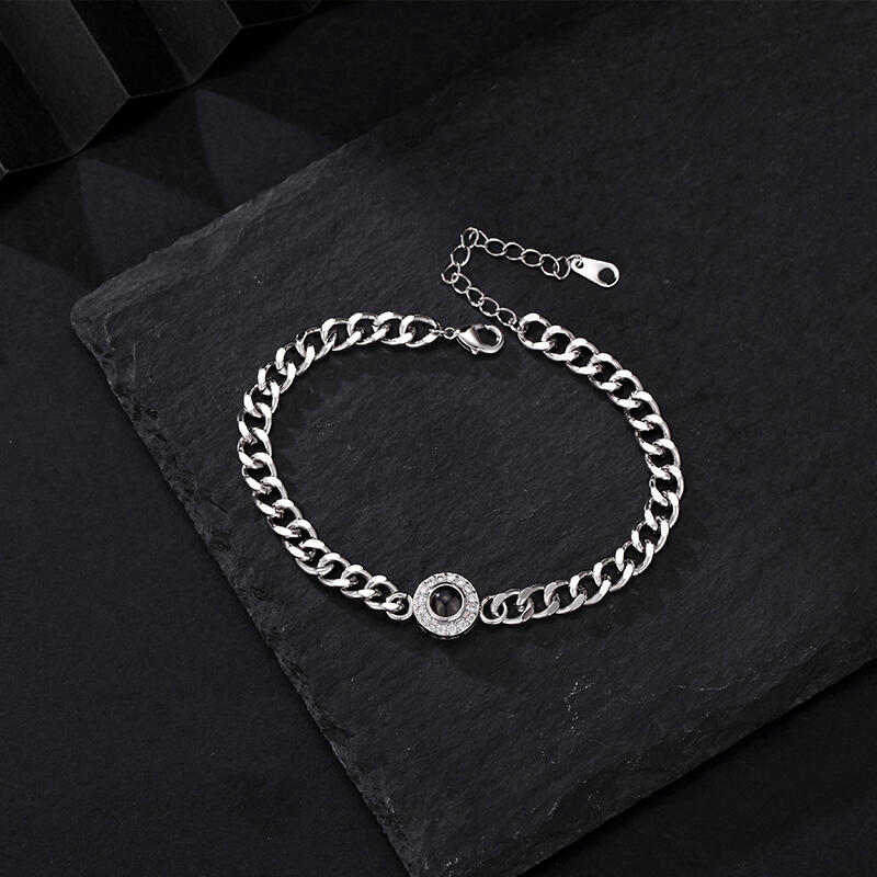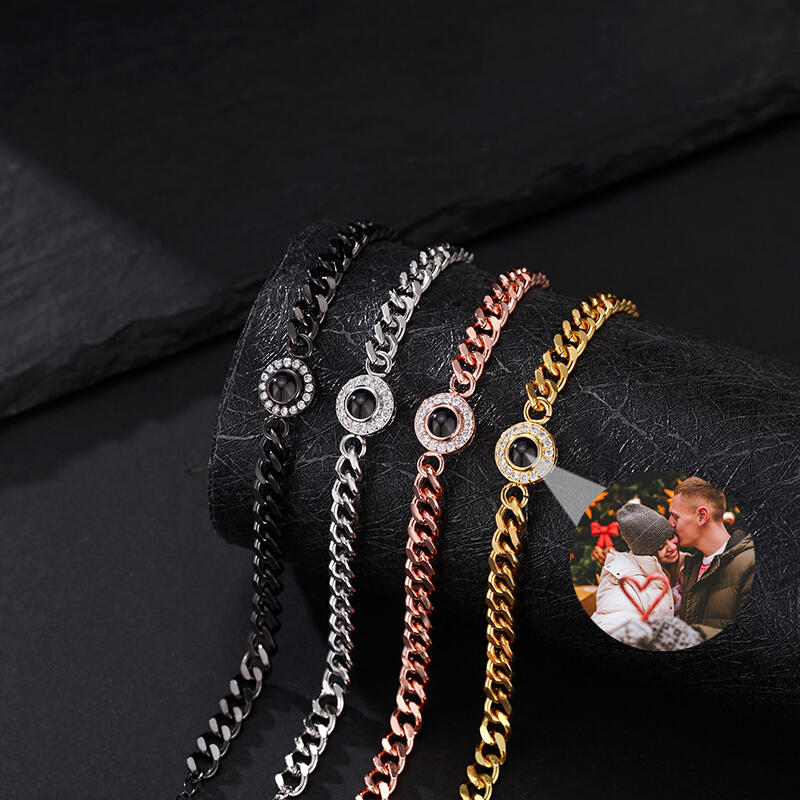 Gepersonaliseerde Projectiebeeld Armband met Dikke Ketting Kerstcadeau voor Hem