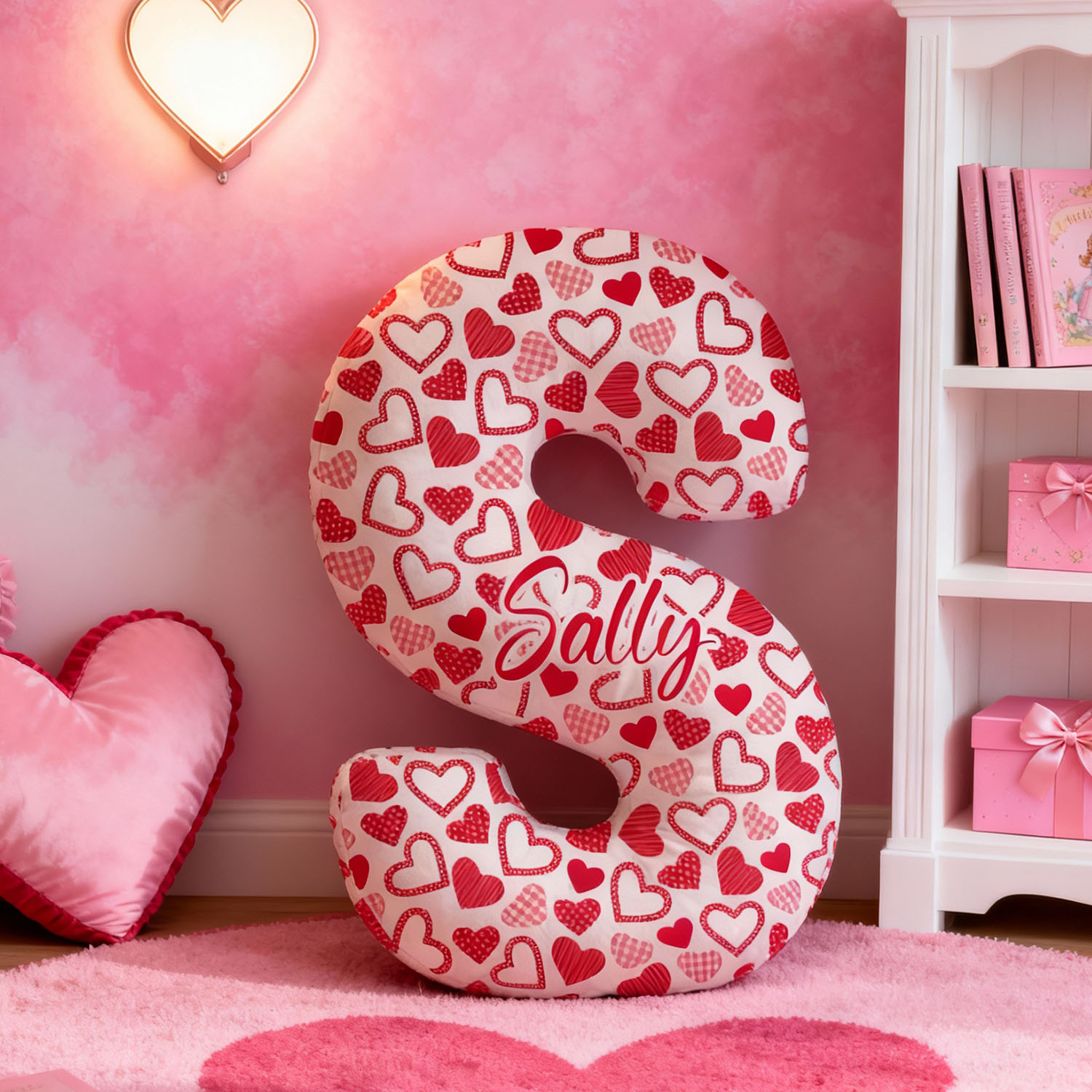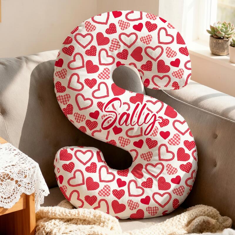 Gepersonaliseerd kussen met rood hartpatroon Speciaal cadeau voor kinderen