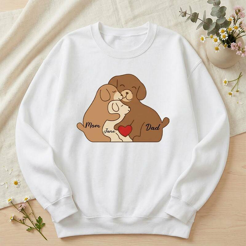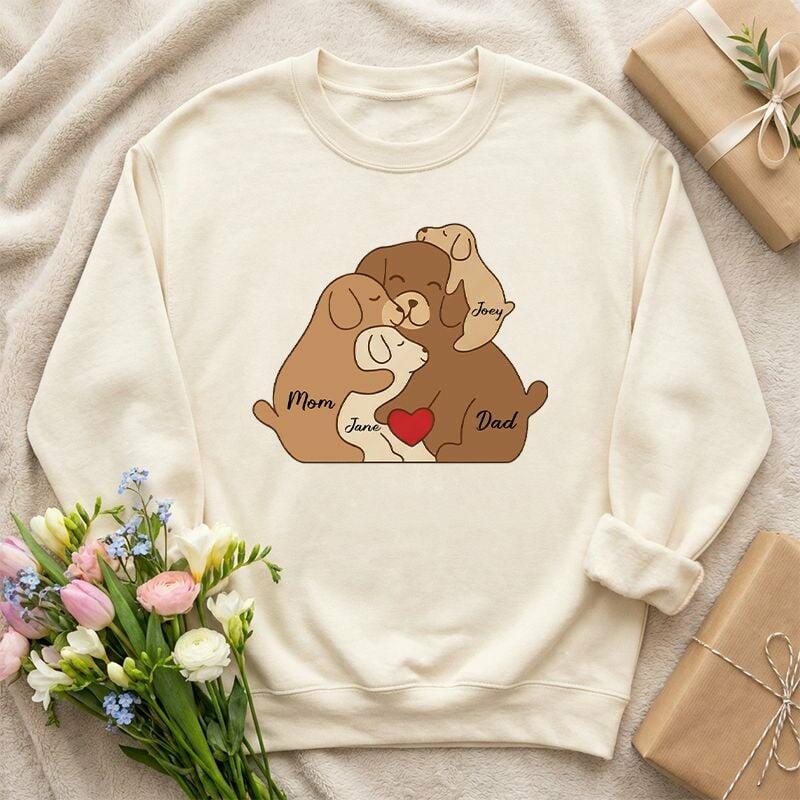 Gepersonaliseerd sweatshirt met eigen familienamen schattig hondenpuzzelpatroon schattig cadeau voor Moederdag