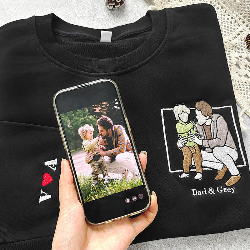 Gepersonaliseerd sweatshirt met geborduurde foto en eigen naam Aantrekkelijk Vaderdagcadeau