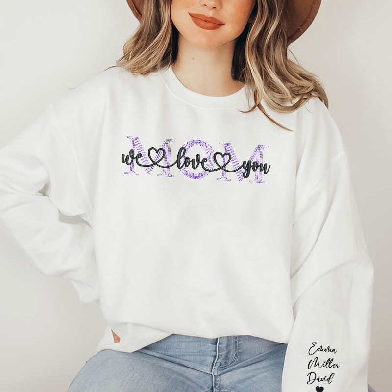 Gepersonaliseerde sweater met borduursel Mam We love you met aangepaste namen Perfect Moederdagcadeau