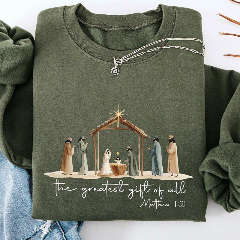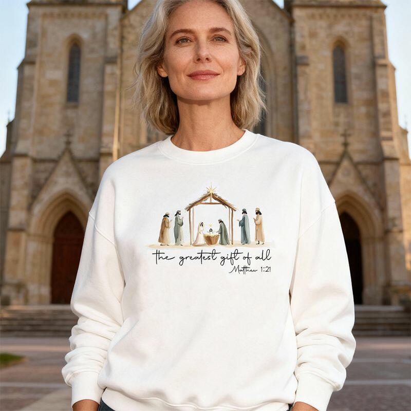 Gepersonaliseerd sweatshirt Het mooiste cadeau aller tijden Kerststalontwerp Cadeau voor religieuze vrienden