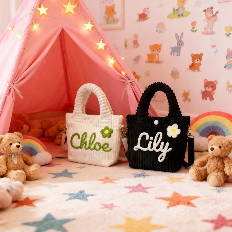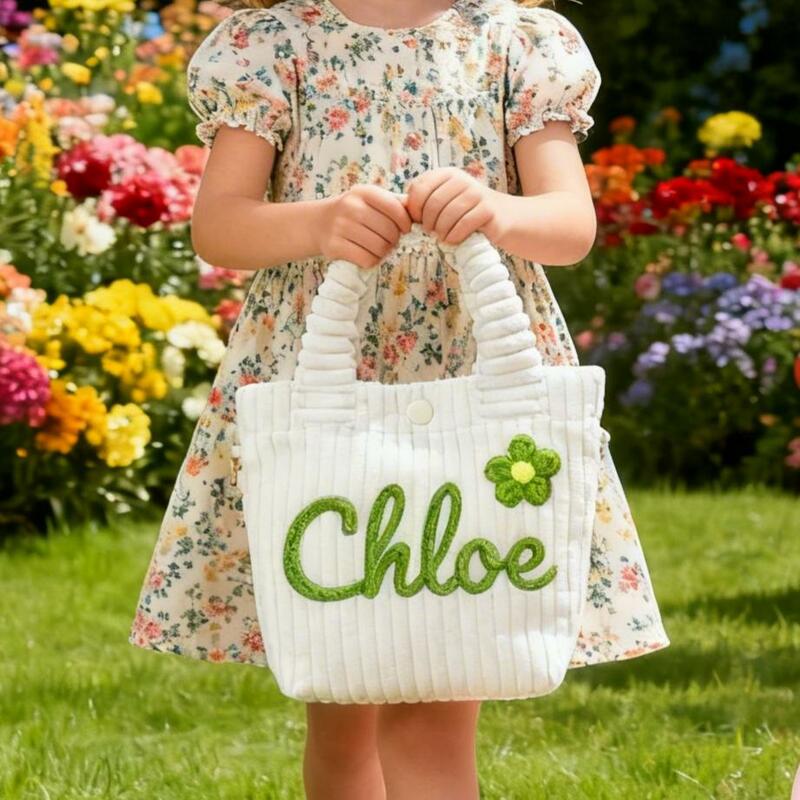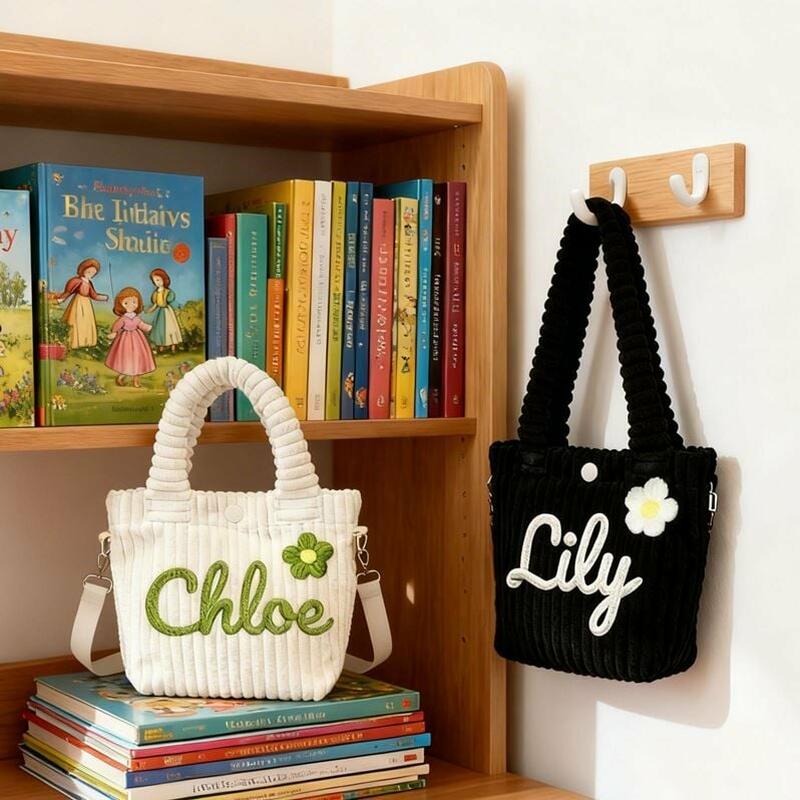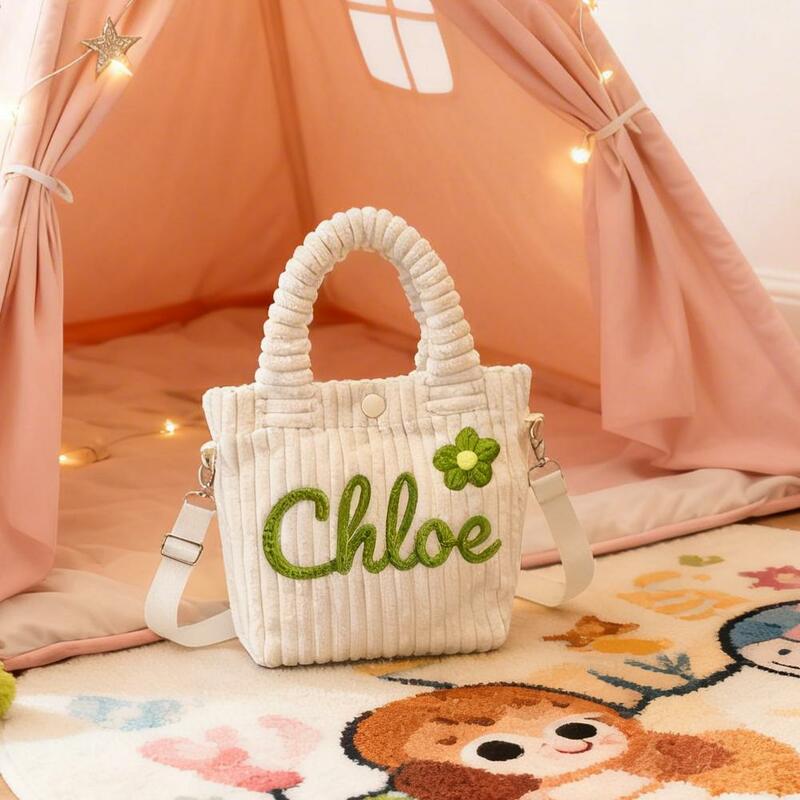 Gepersonaliseerde peuter schoudertas aangepaste naam Gebreide Bloemversiering Verjaardagscadeau voor kinderen