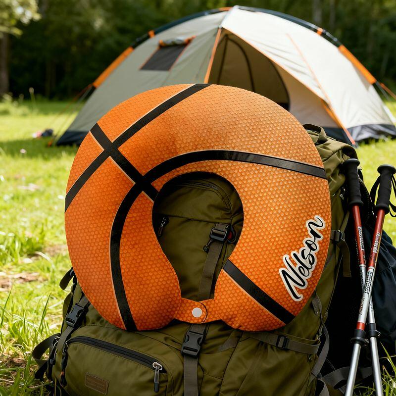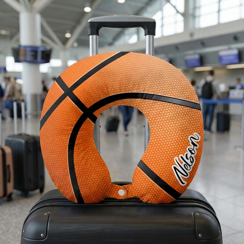 Gepersonaliseerd U-vormig nekkussen met basketbalelementontwerp Cadeau voor sportieve vrienden