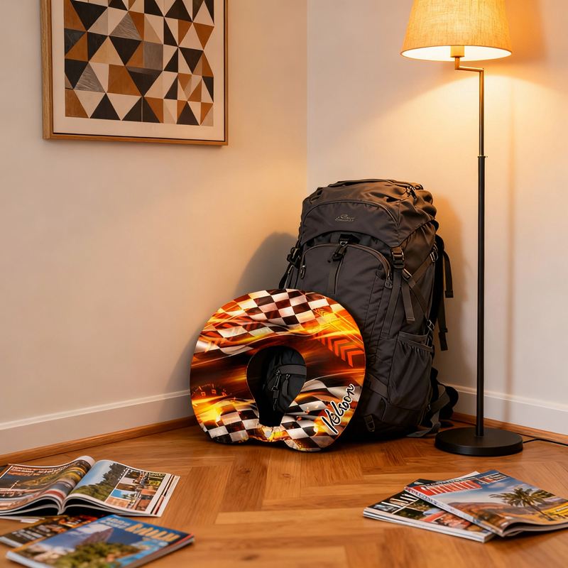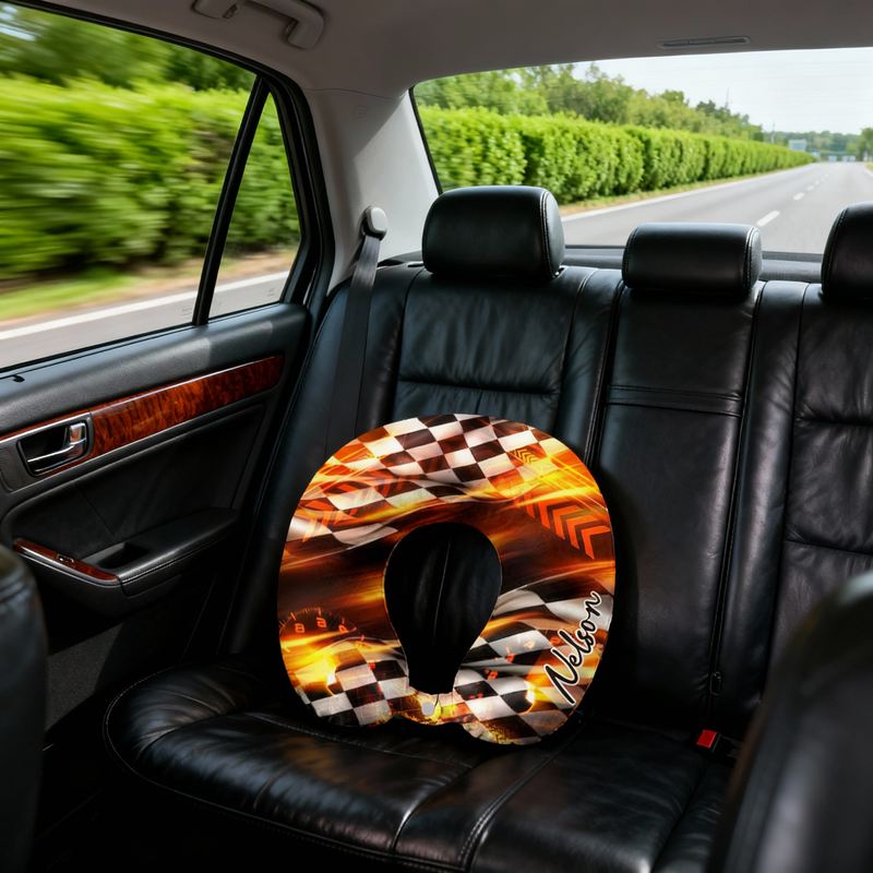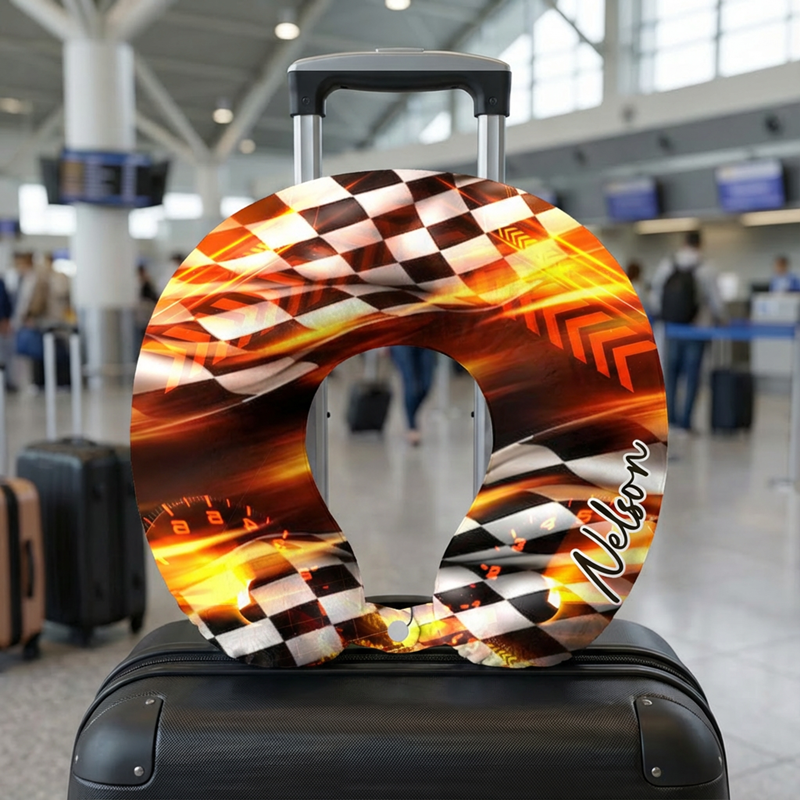 Gepersonaliseerd U-vormig nekkussen met levendig racepatroon cool cadeau voor vrienden